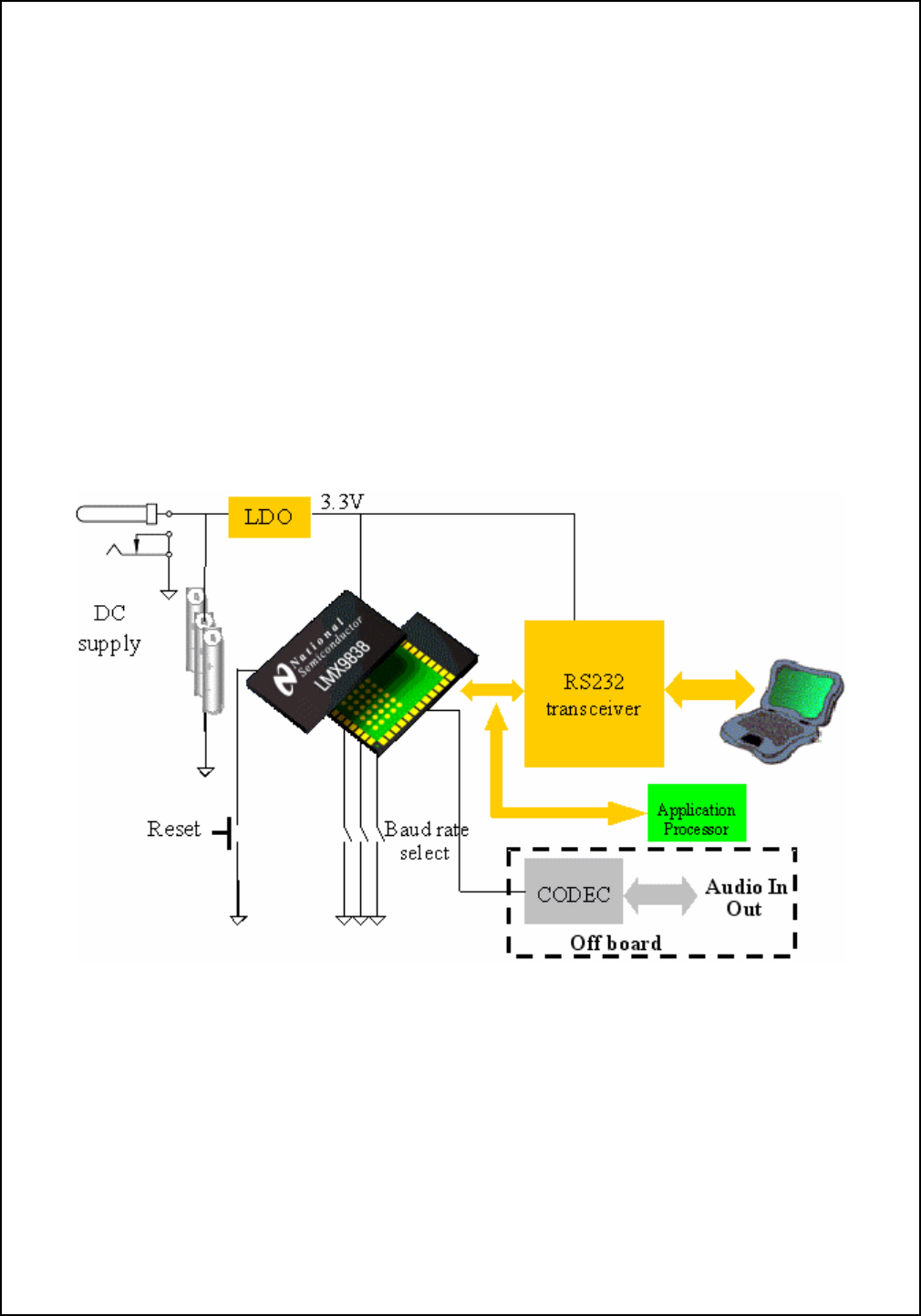 RS232 interface chip and Digital portion of the LMX9838.