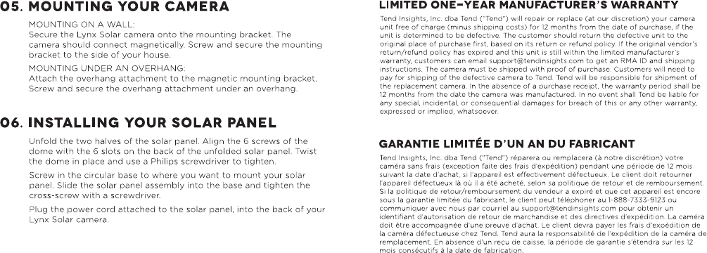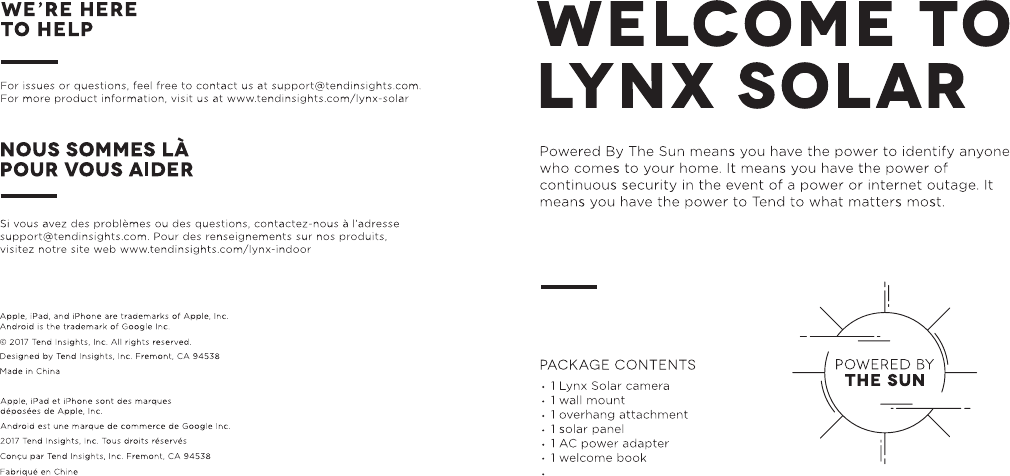 Tend Insights, Inc. TEND SECURE LYNX SOLAR welcome book qsg ol20170830