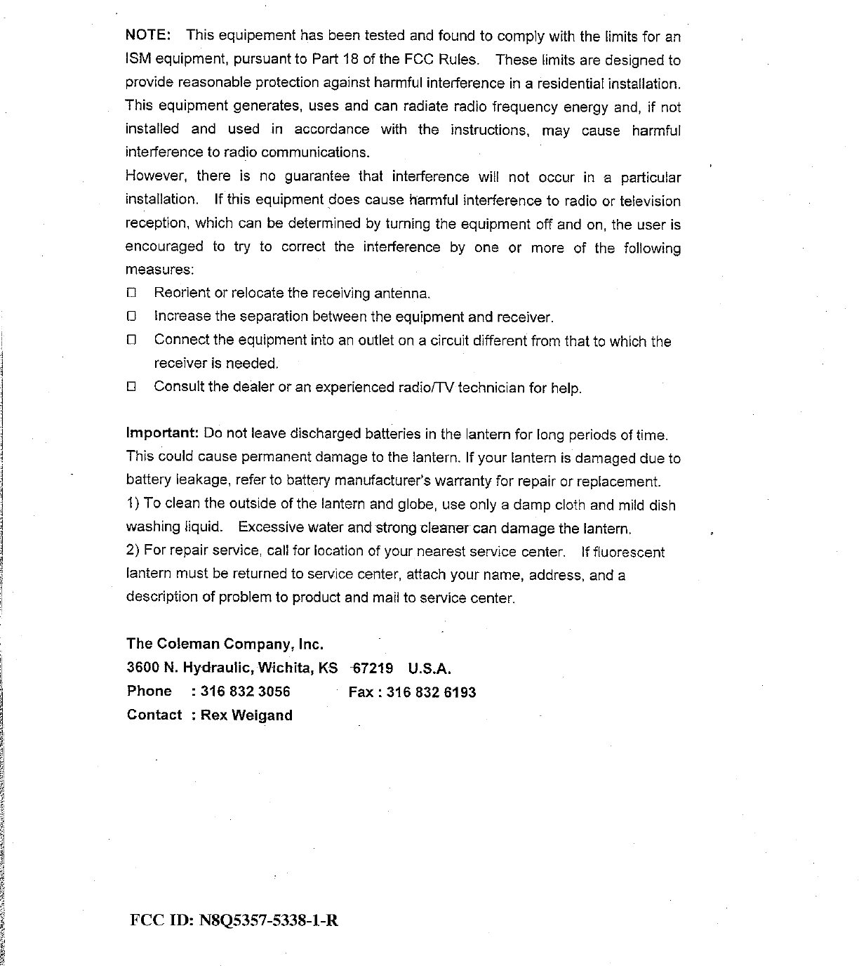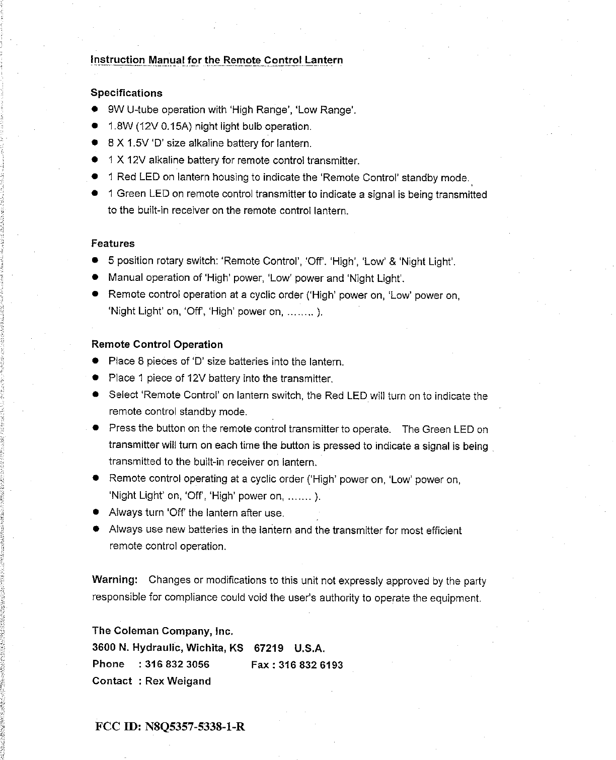 The Coleman 5357-5358-1-R Remote Control Fluorescent Lantern User Manual