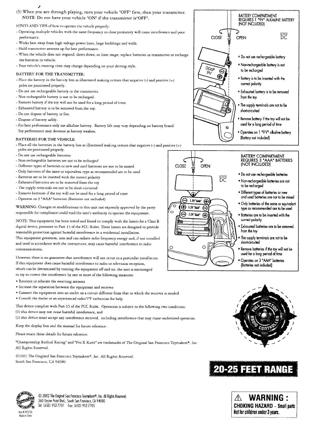 The Original San Francisco Toymaker 07577QN RC Car User Manual