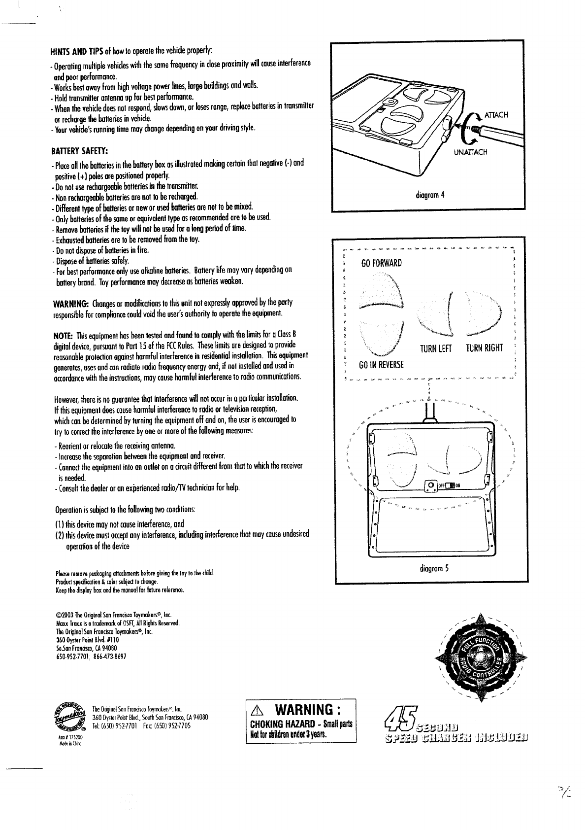 The Original San Francisco Toymaker 175201 RC Car User Manual