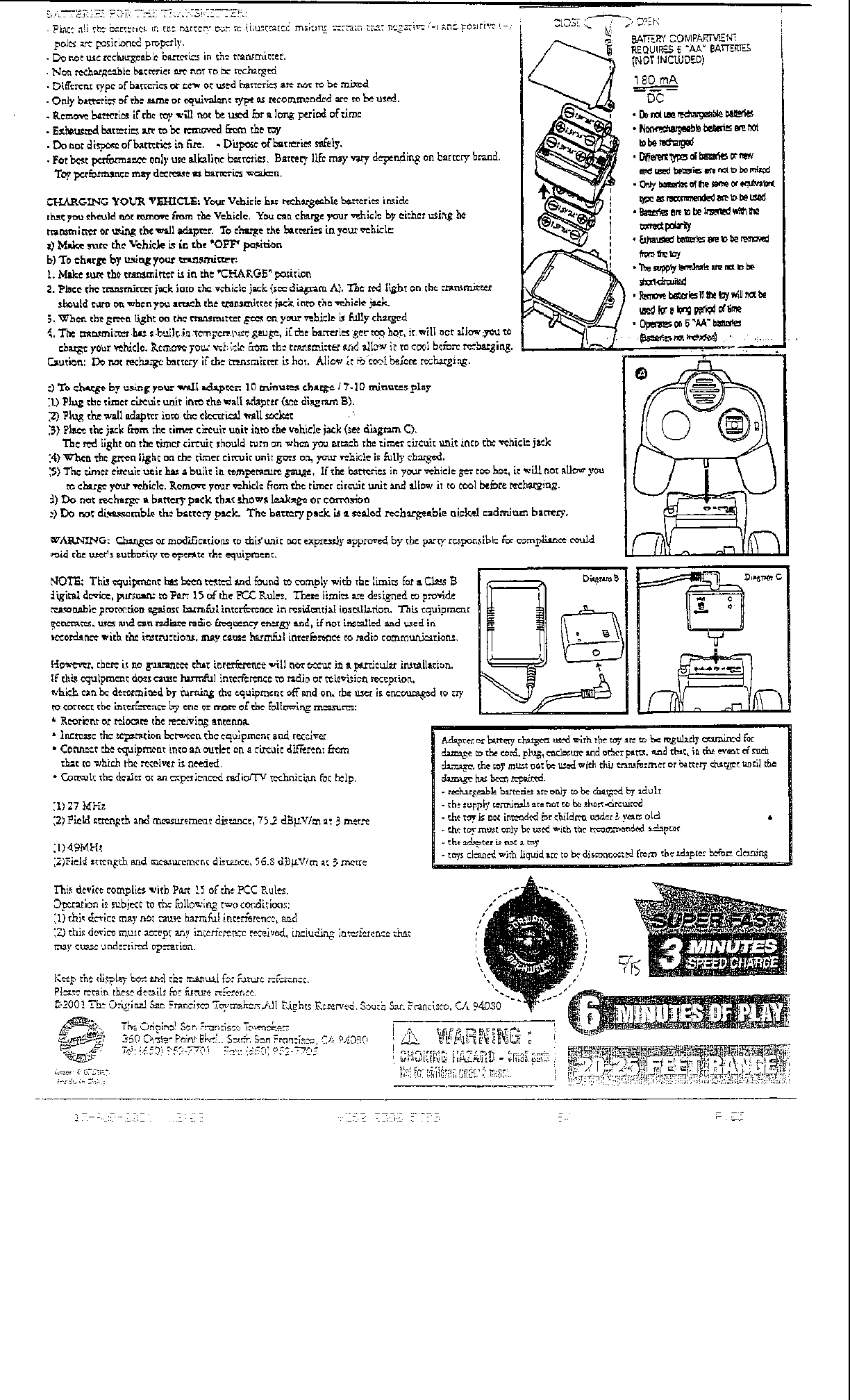 The Original San Francisco Toymaker Remote Control Toy Users Manual