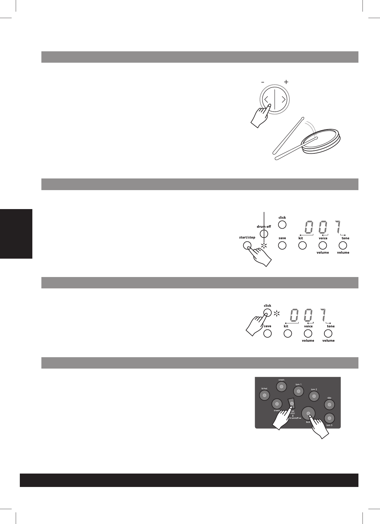 acoustic drum set but with greater ease. Prior to using this instrument, we recommend that you read through