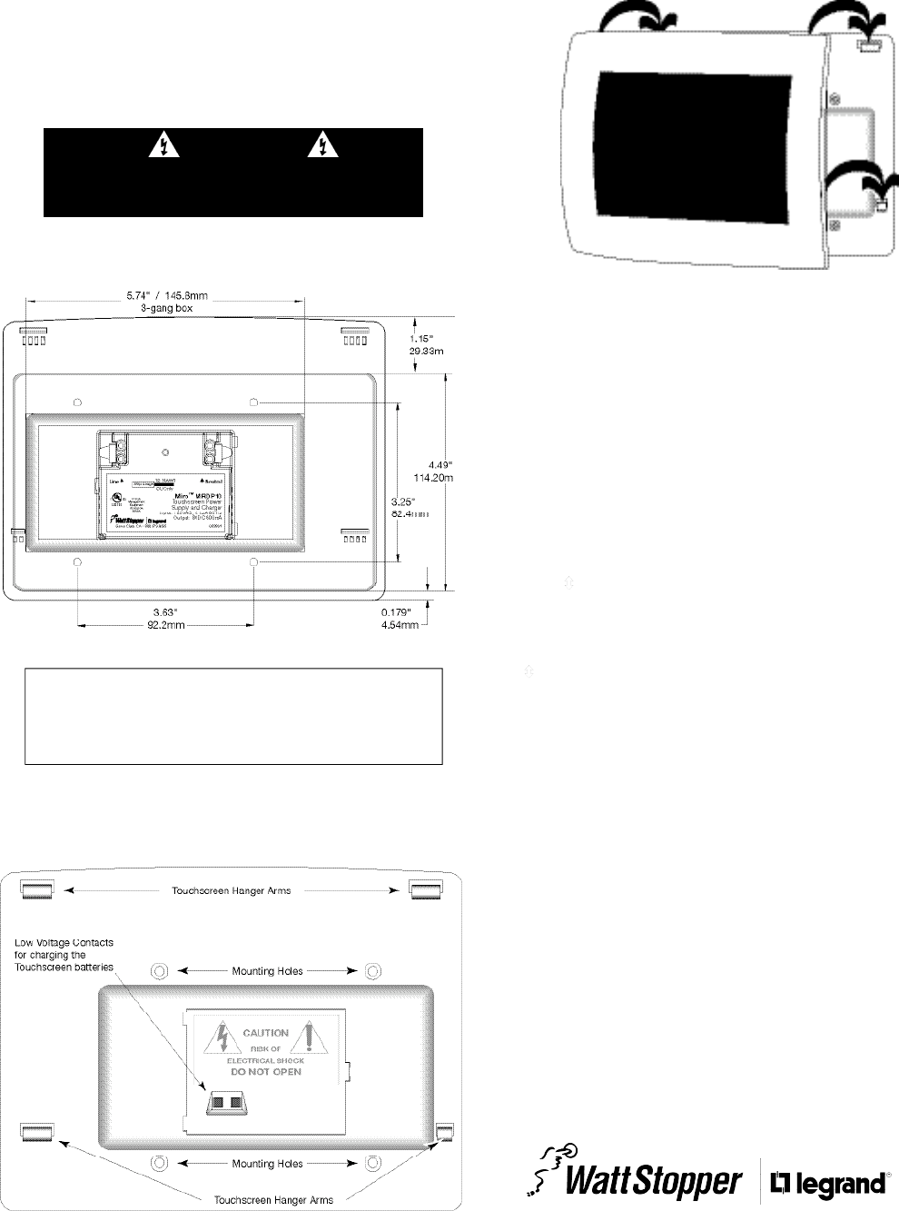 6 . Hang the To u c h s c reen from the To u c h s c r een Hanger Arms on the fro n t