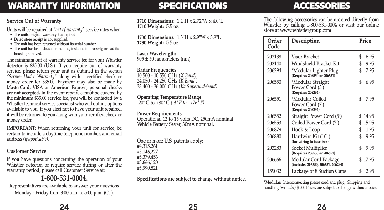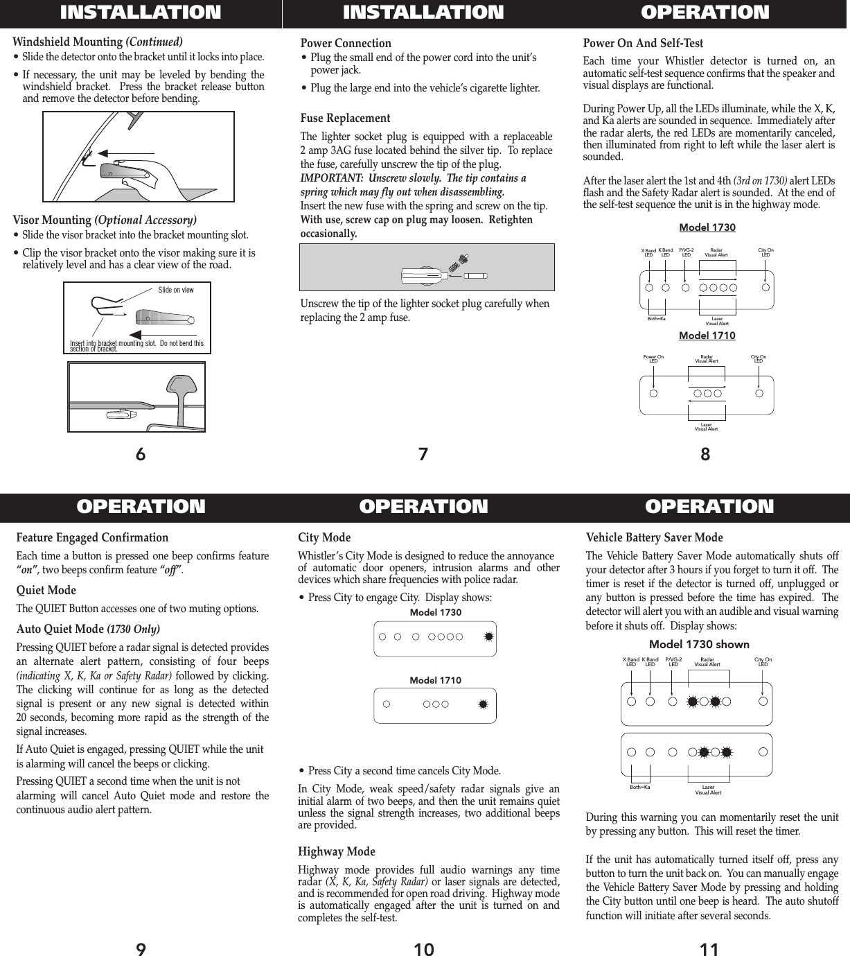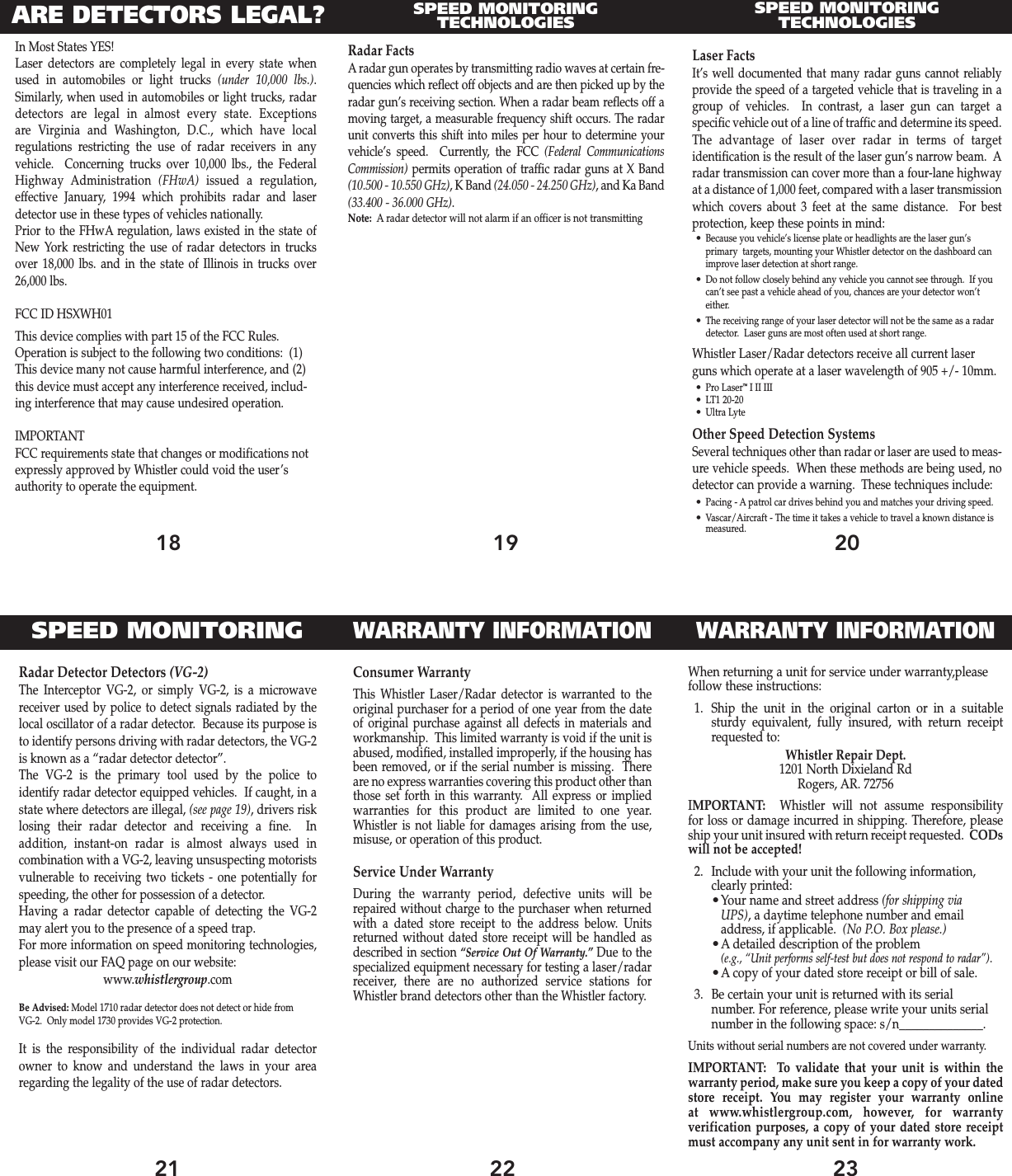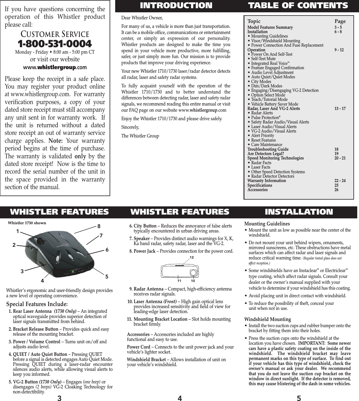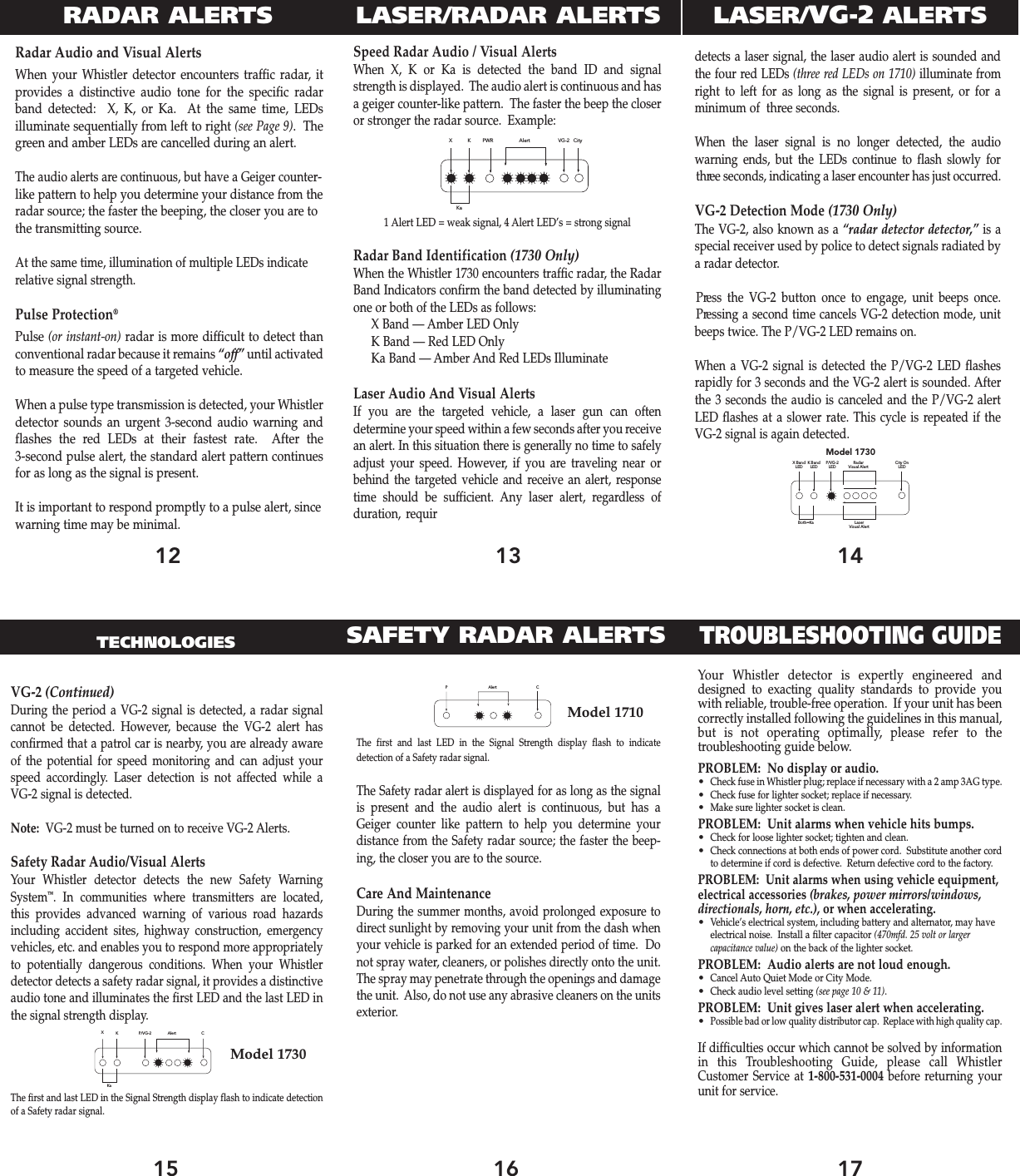 The Whistler Group WH01 Radar Detector User Manual 1710 1730 Man