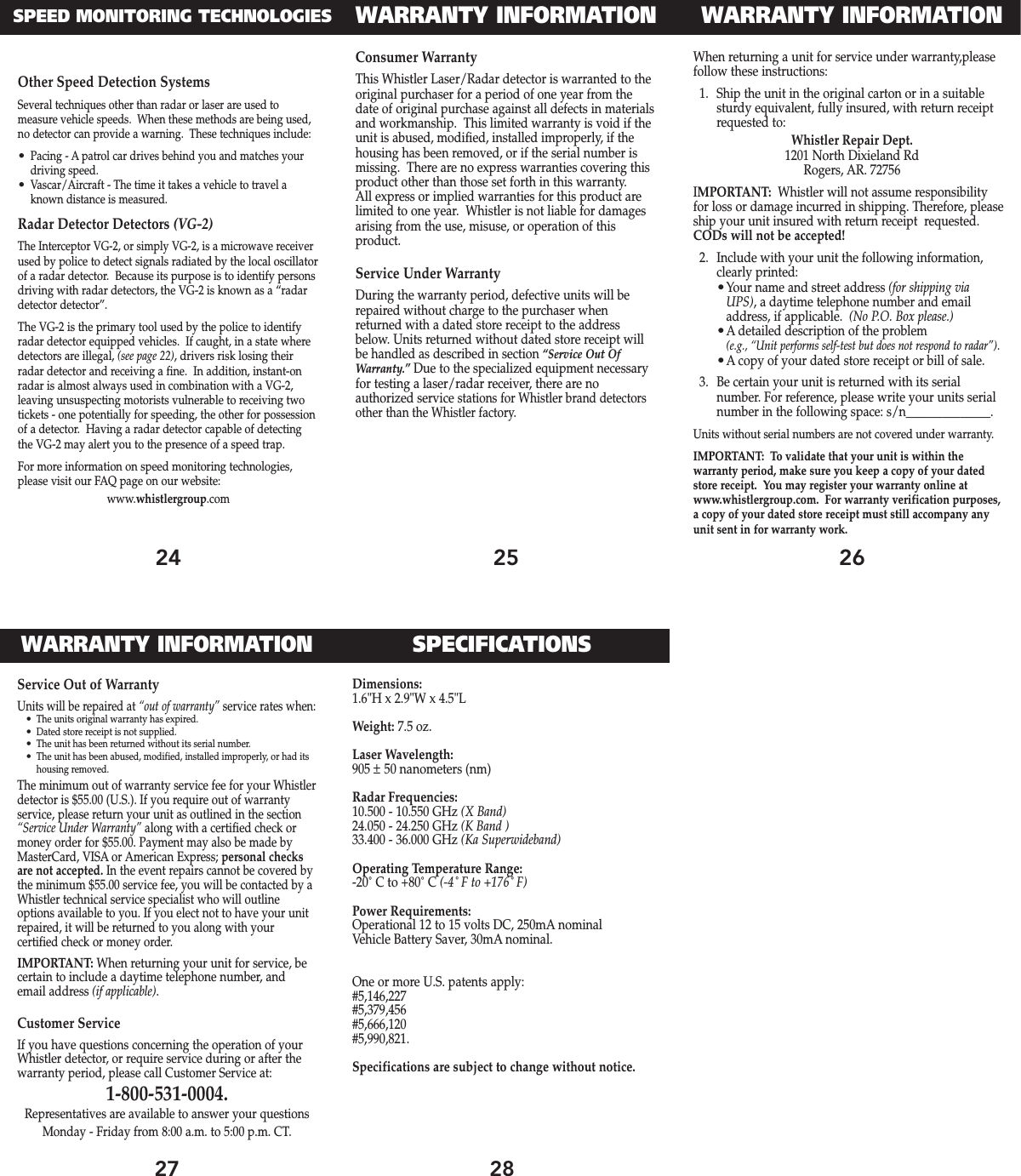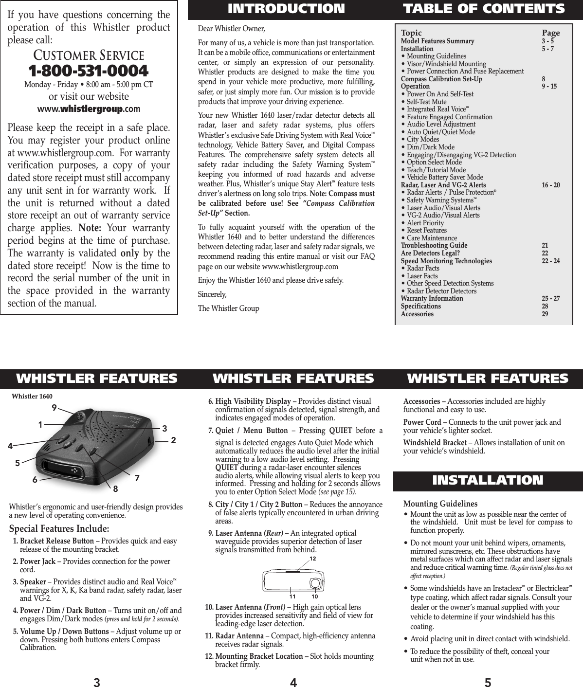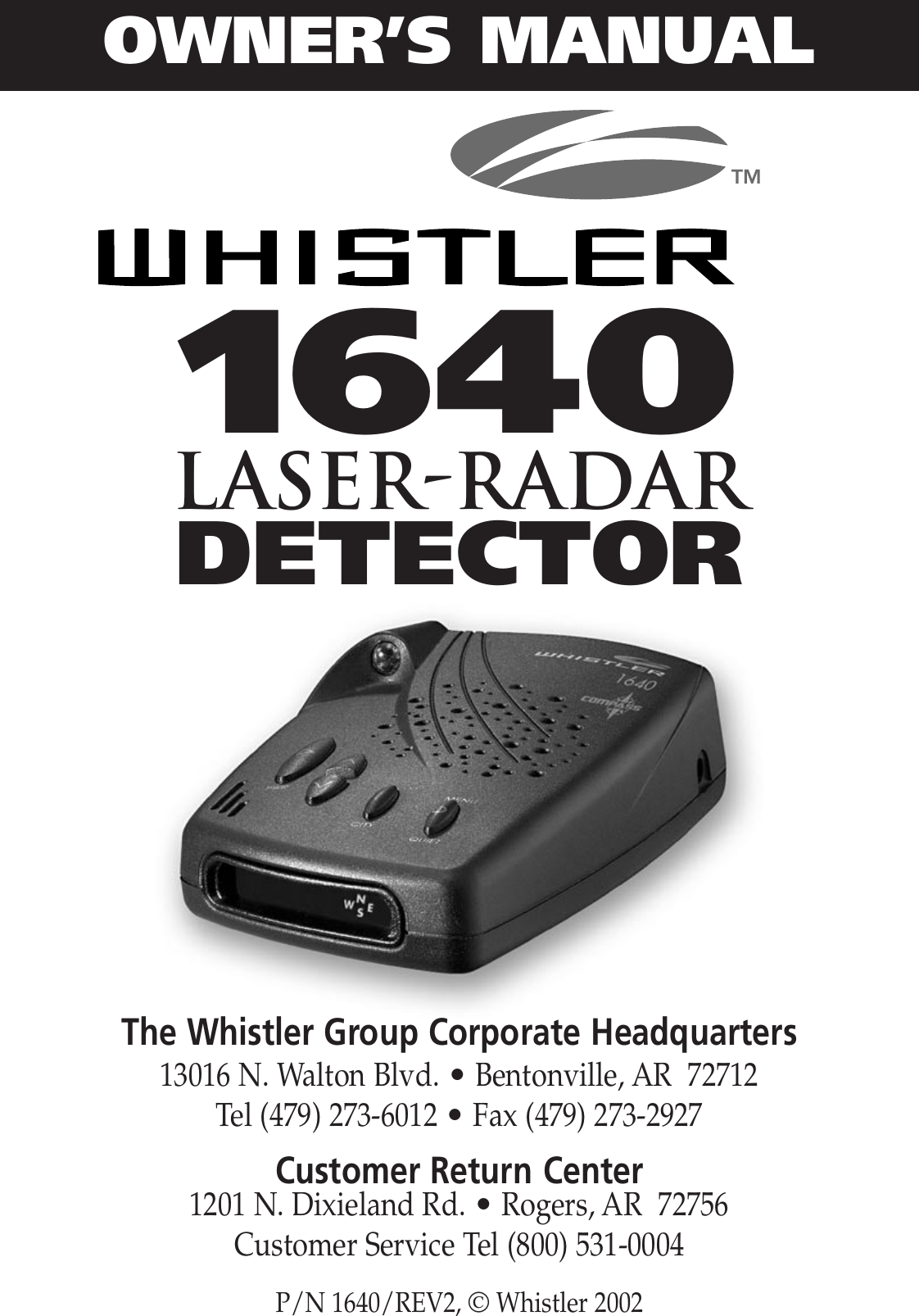 The Whistler Group WH02 Radar Detector User Manual 1640
