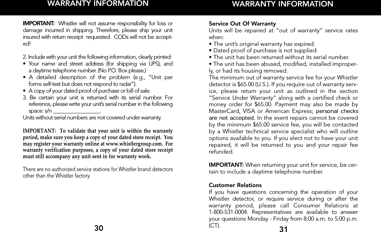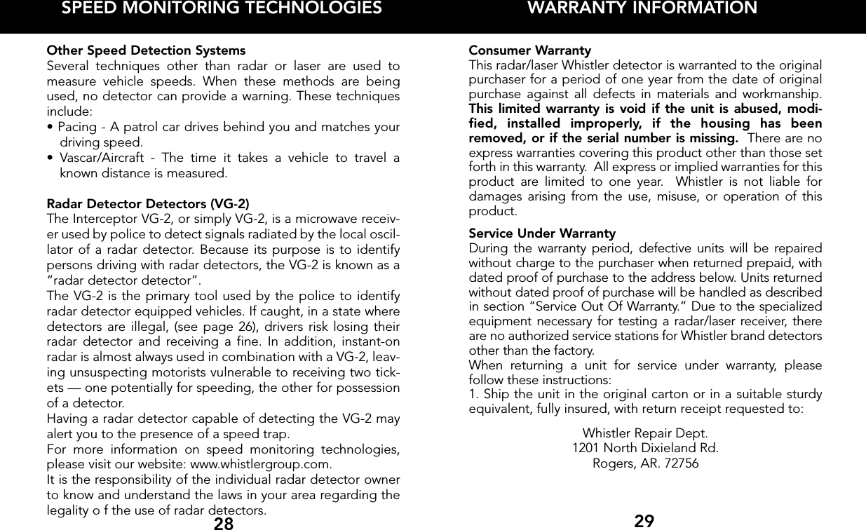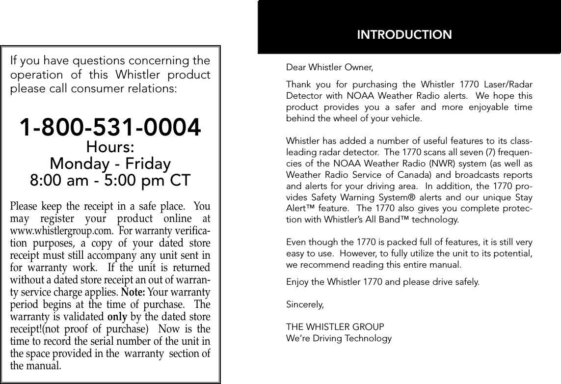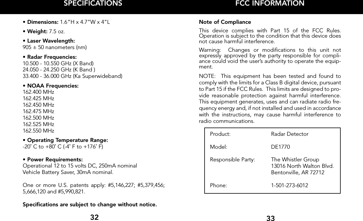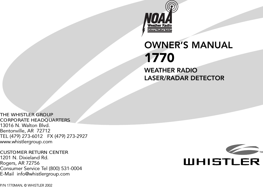 The Whistler Group WH05 Radar Detector User Manual NOAA 1770 manual