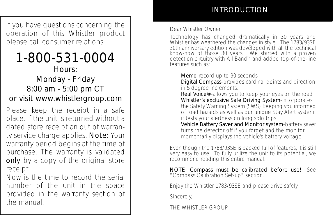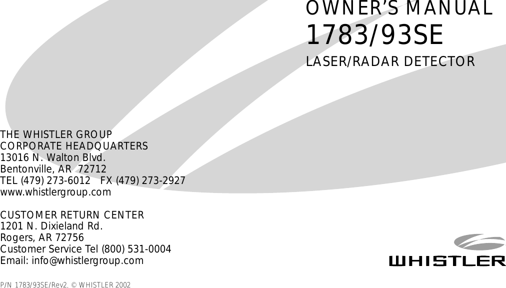 The Whistler Group Radar Detectors 1790SE MANUAL