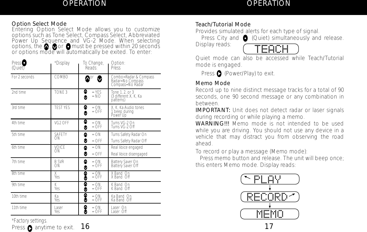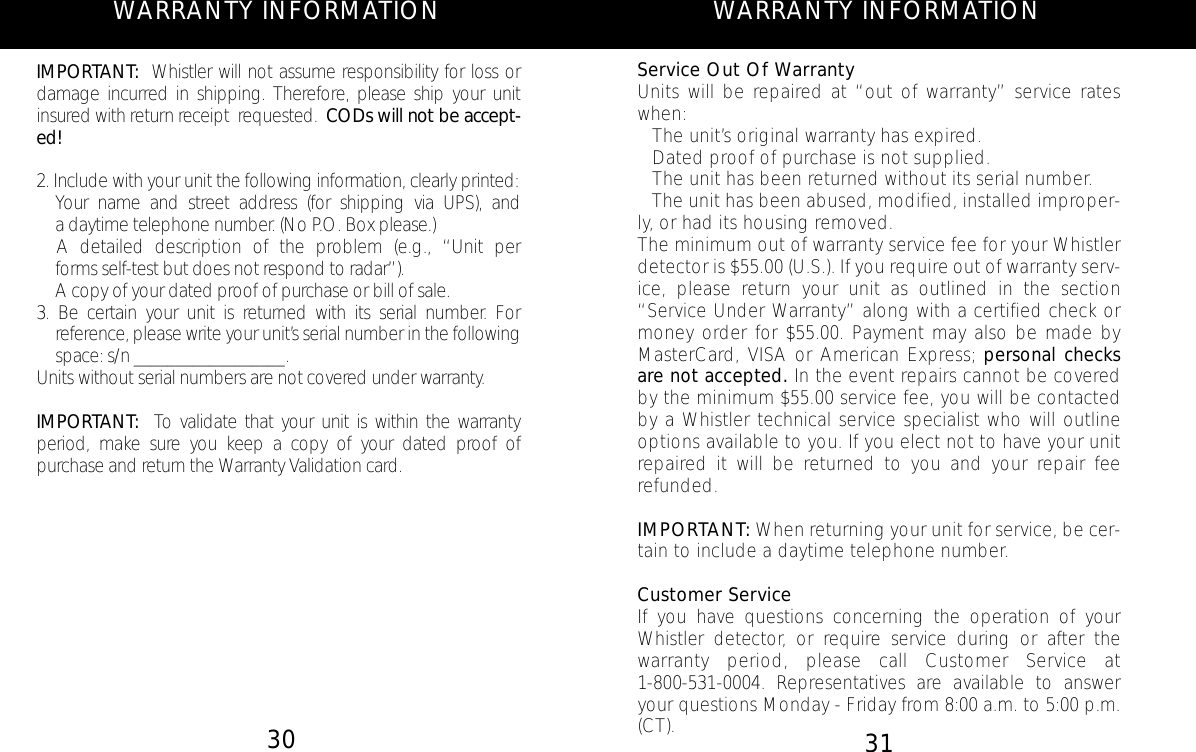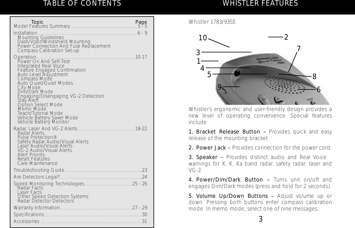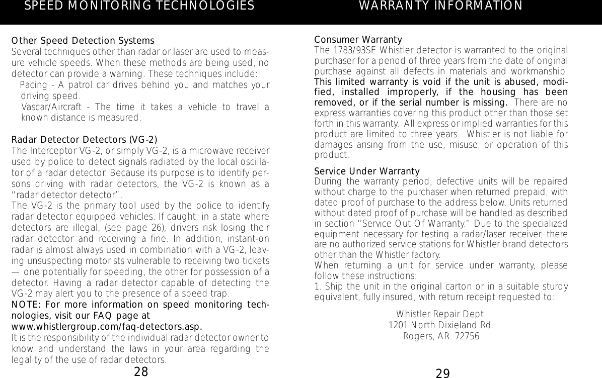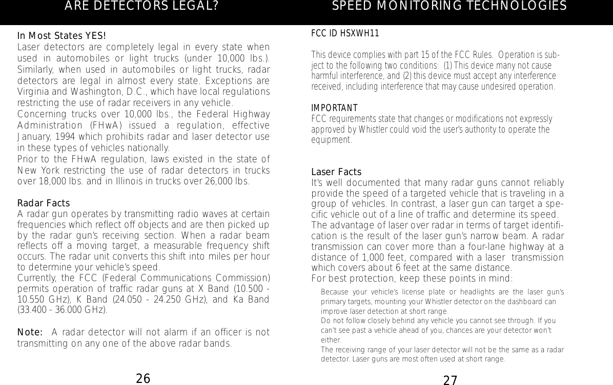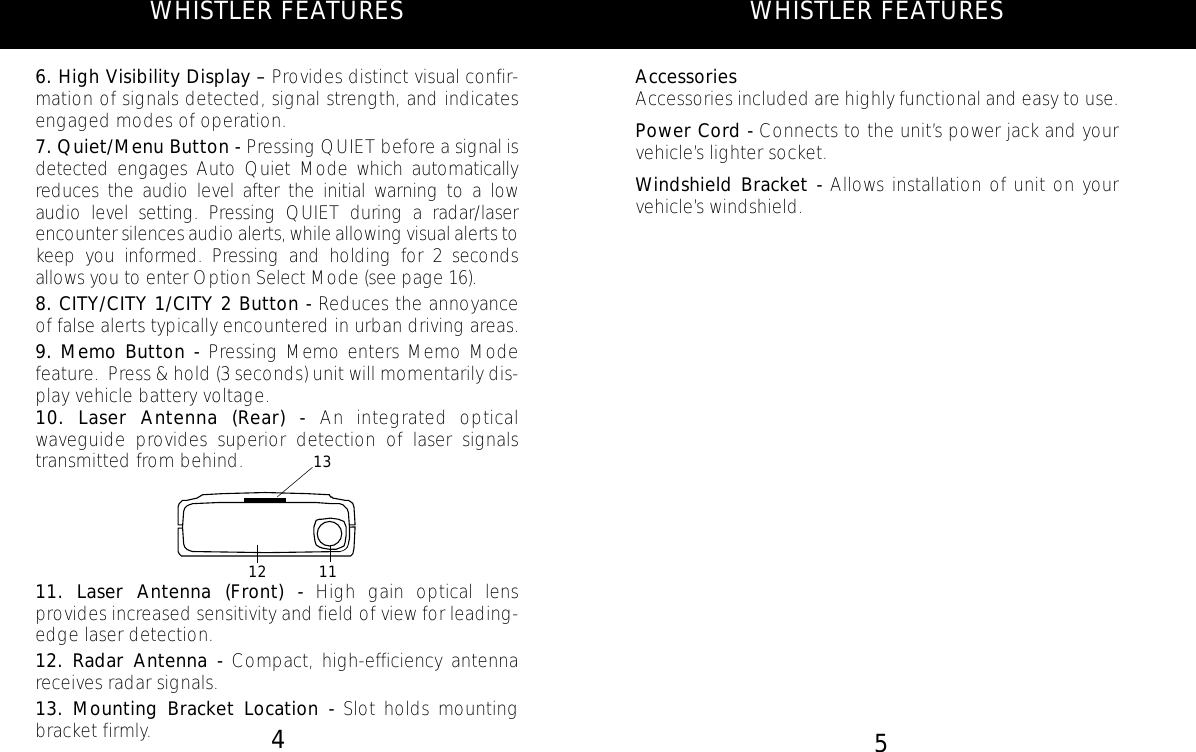 The Whistler Group WH11 Radar Detectors User Manual 1790SE MANUAL