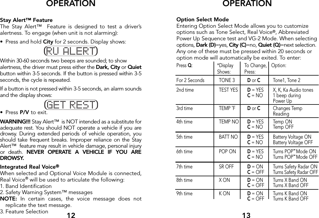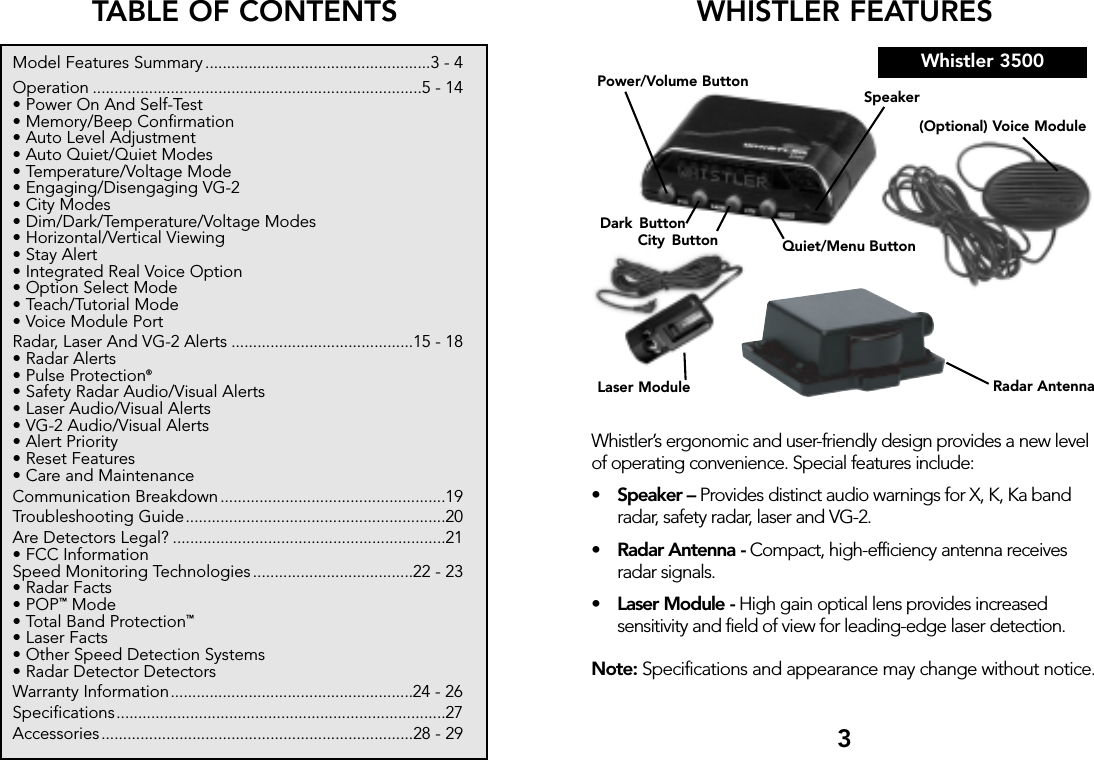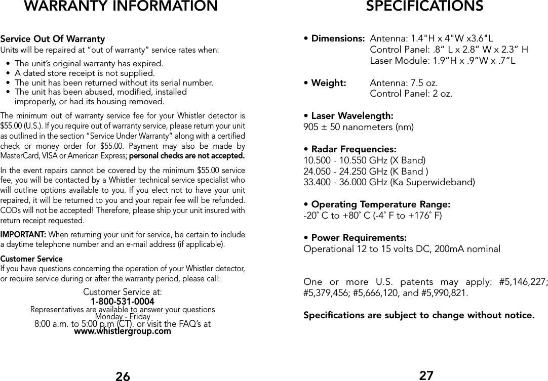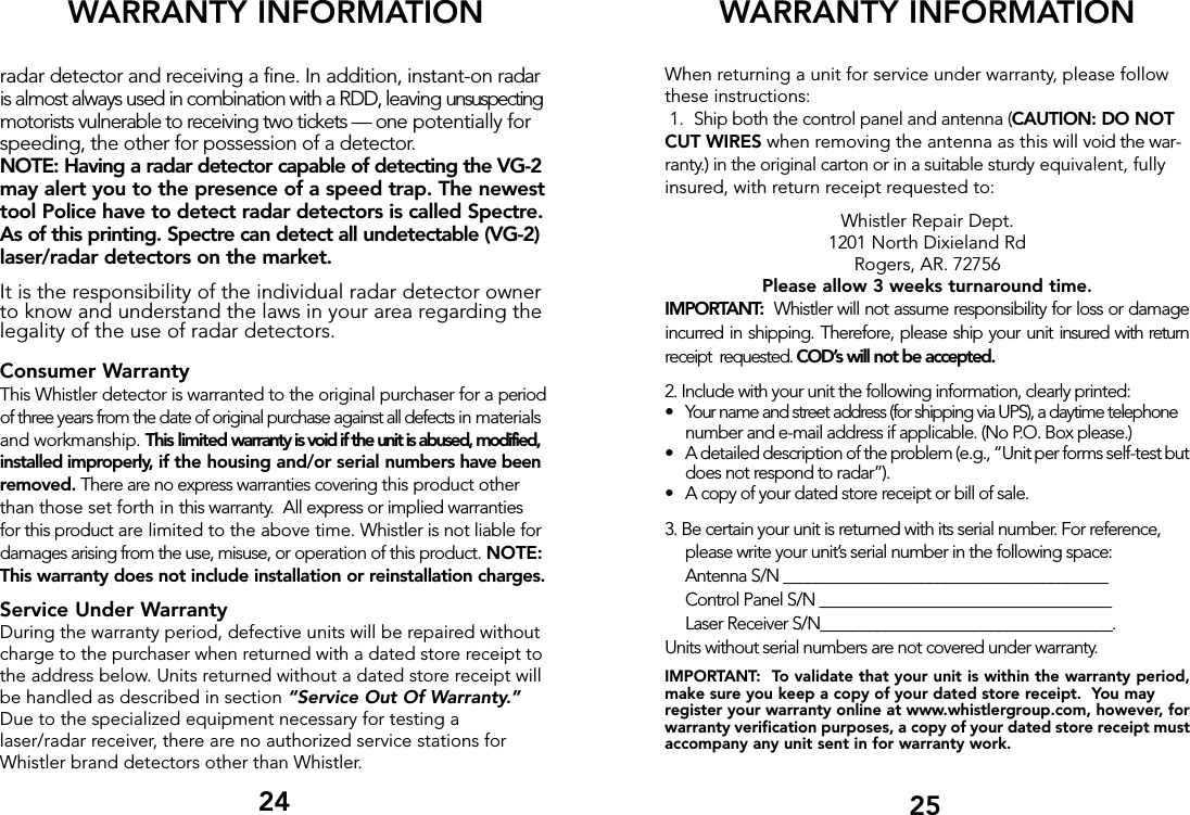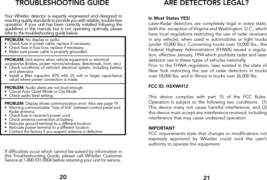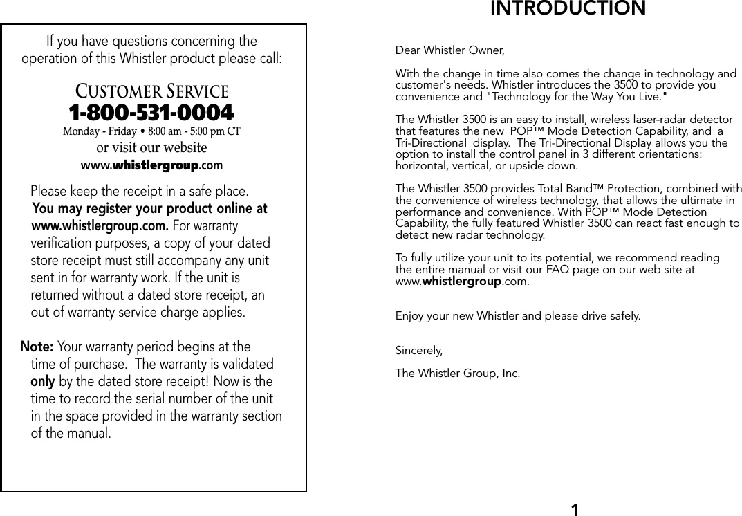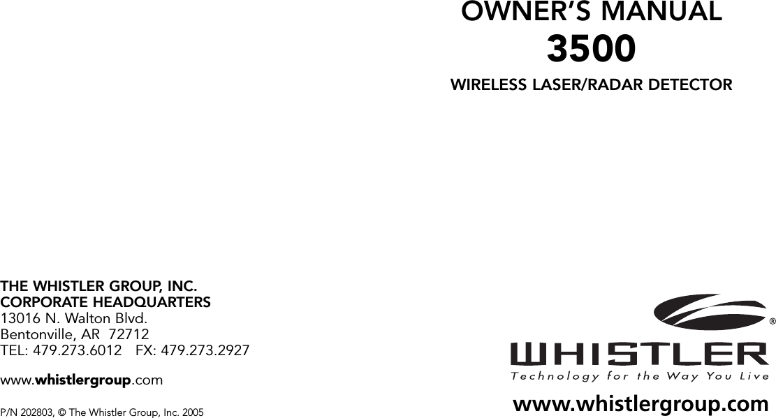 The Whistler Group WH12 Radar Detector User Manual 3500