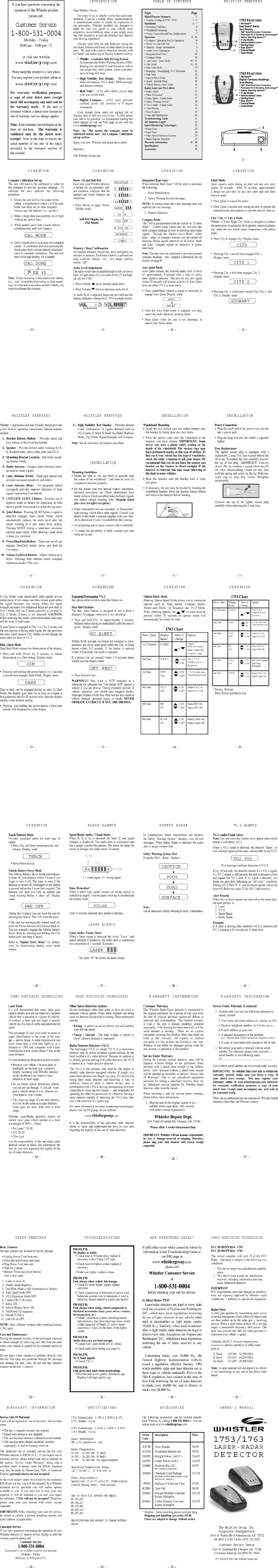 The Whistler Group WH13 Radar Detectors User Manual Manual DE1763