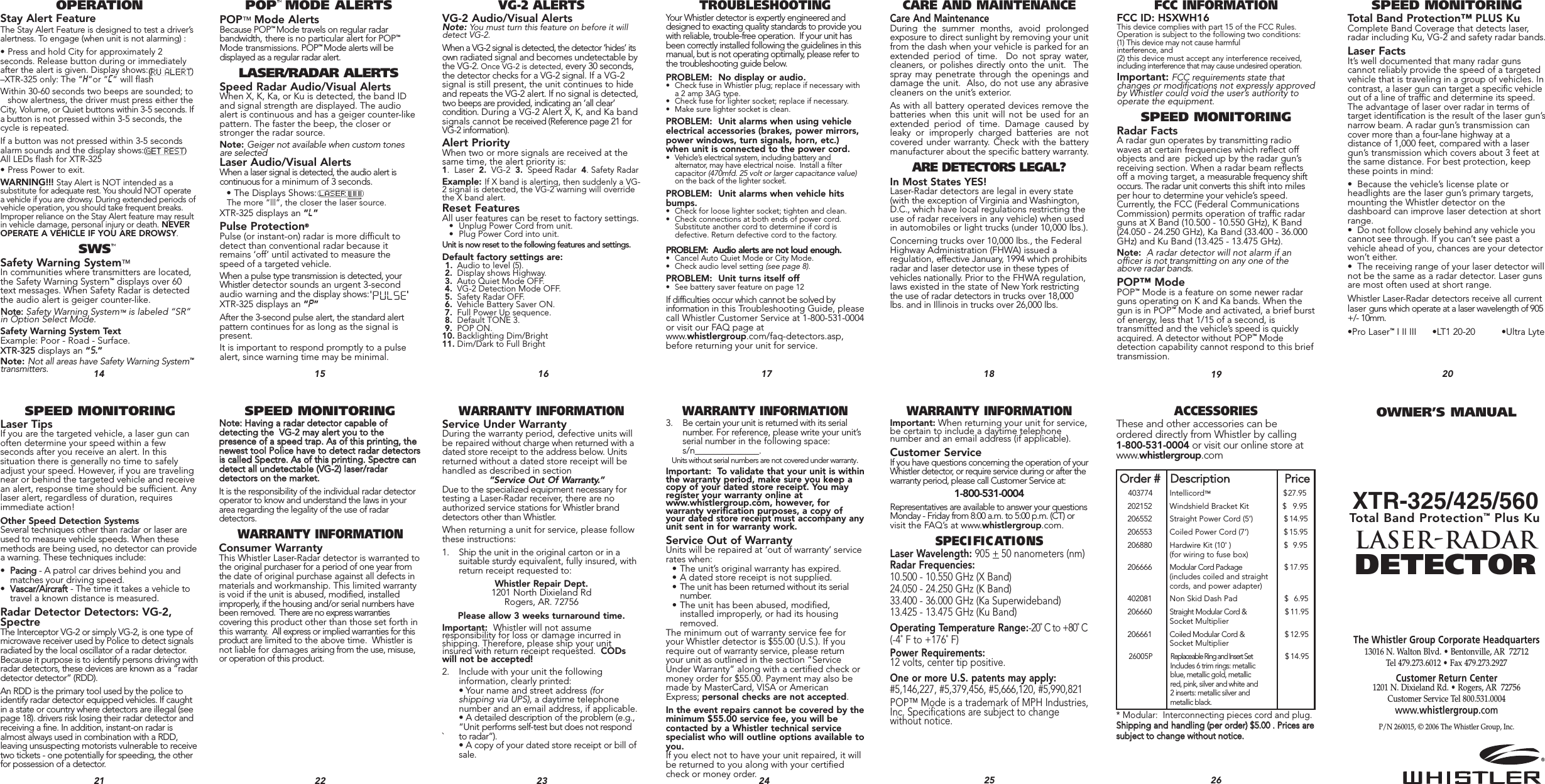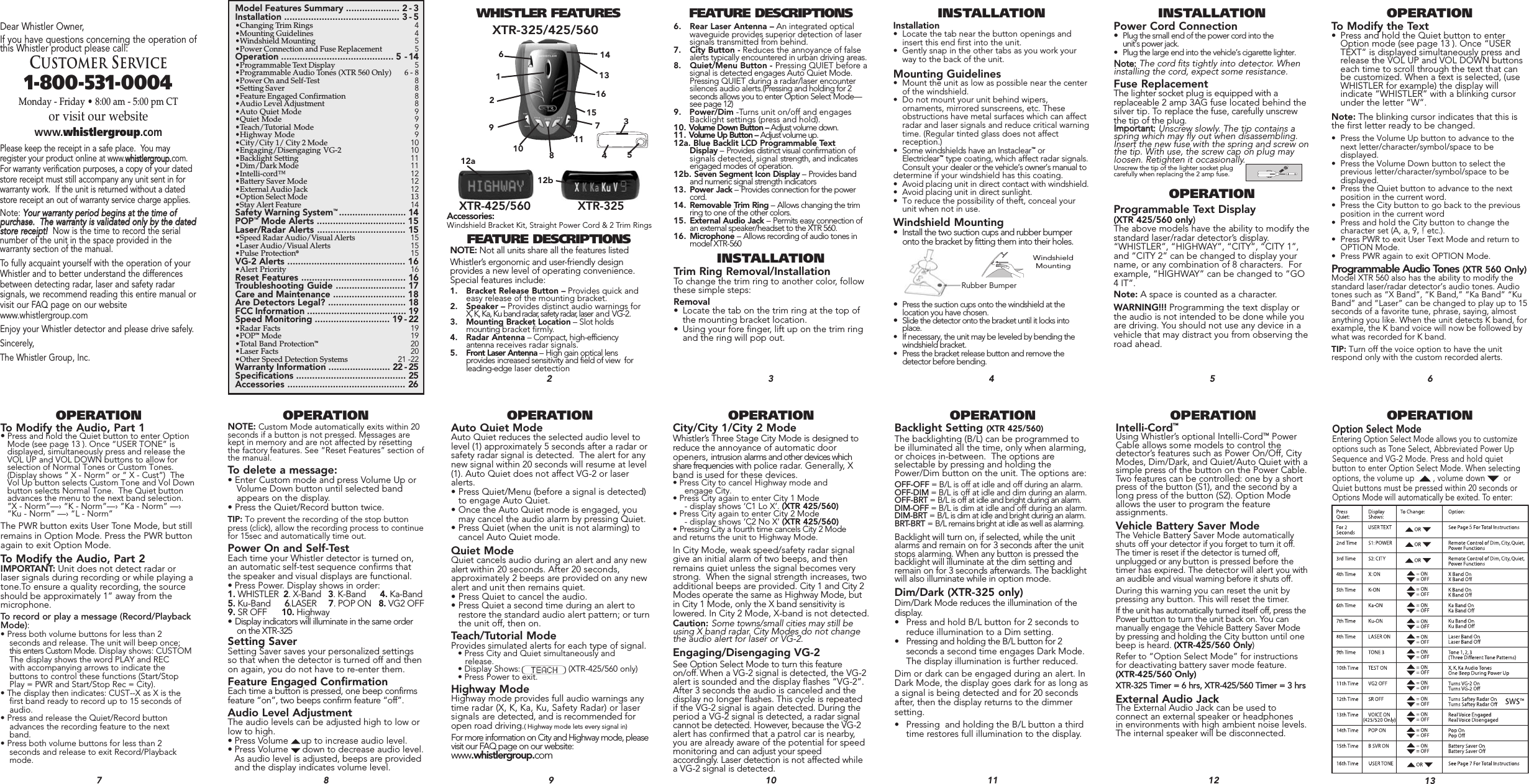 The Whistler Group WH16 Radar Detector User Manual Manual