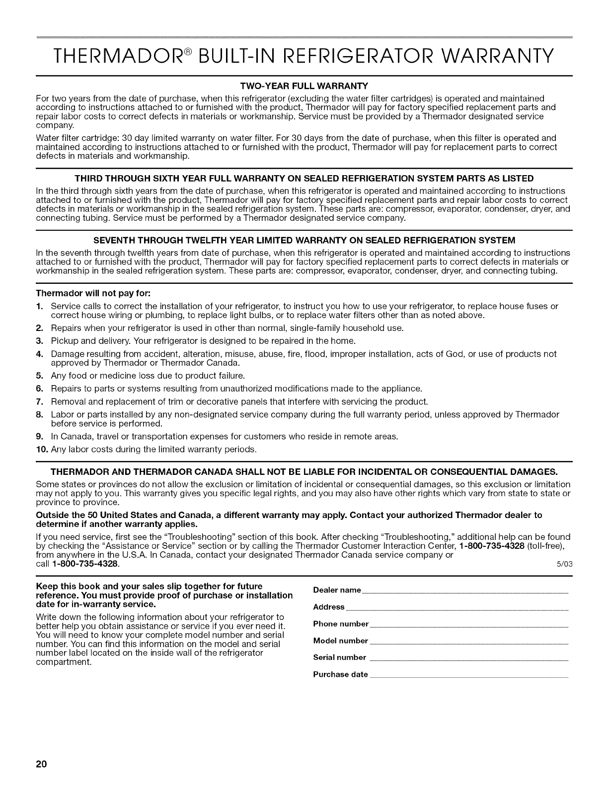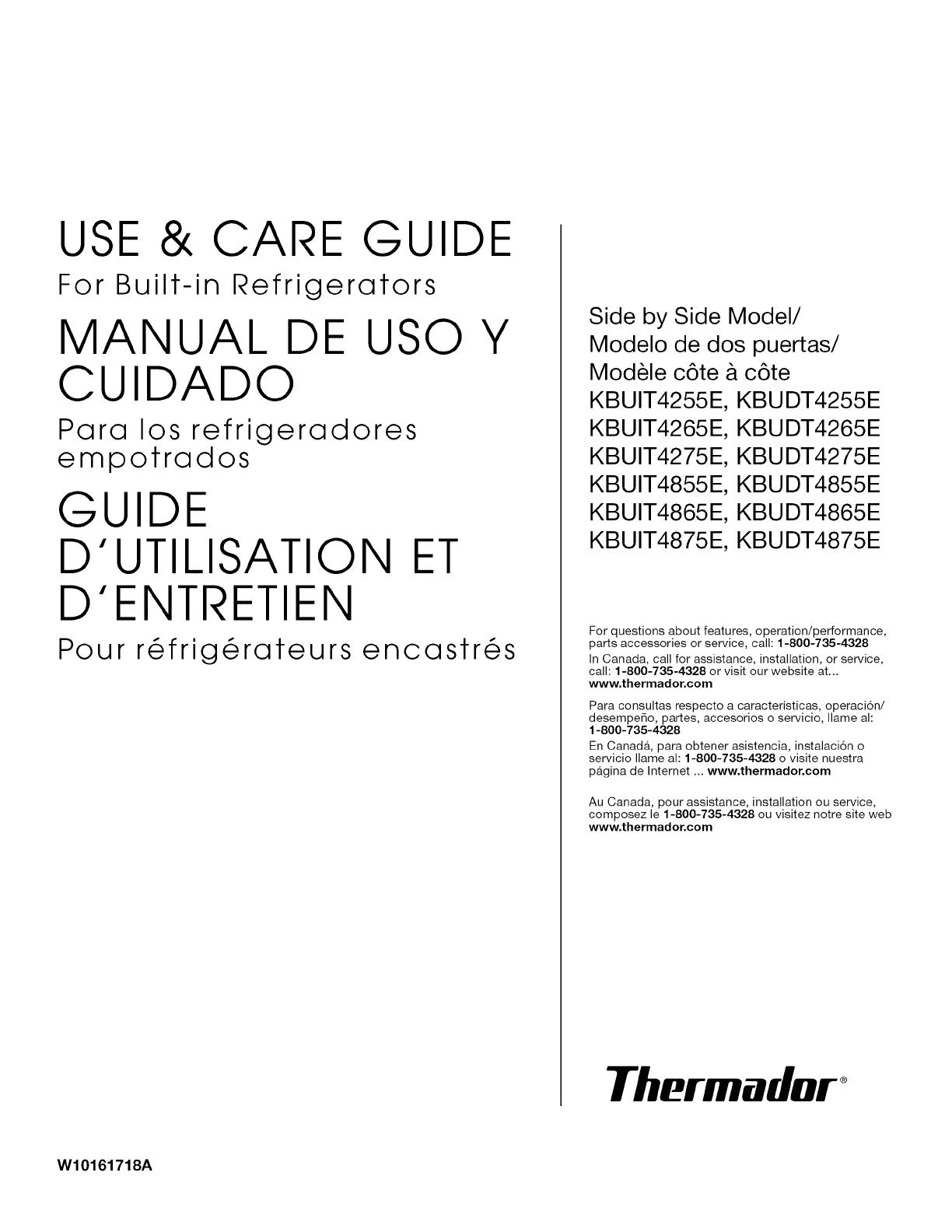 Thermador KBUDT4265E/04 User Manual BUILT IN REFRIGERATOR Manuals And Guides L0902256