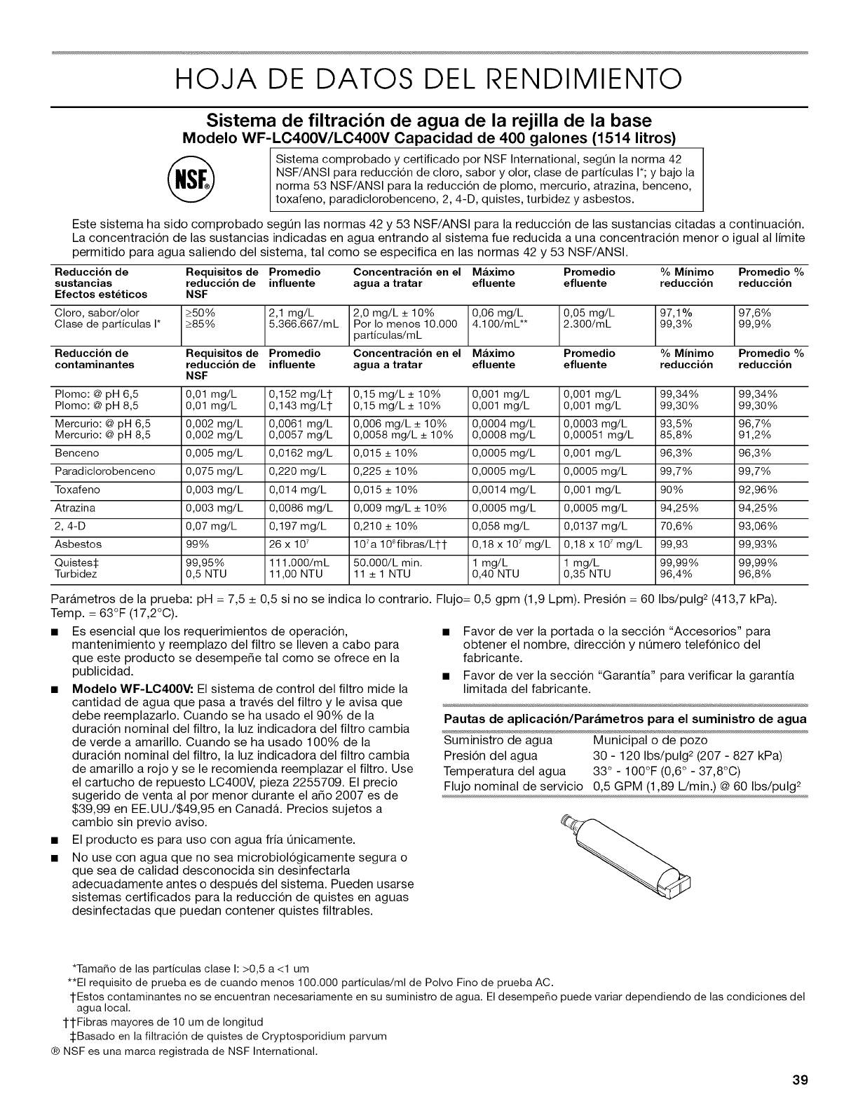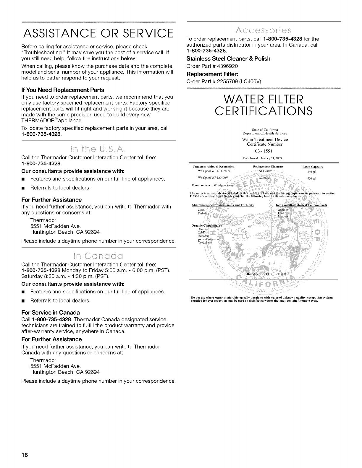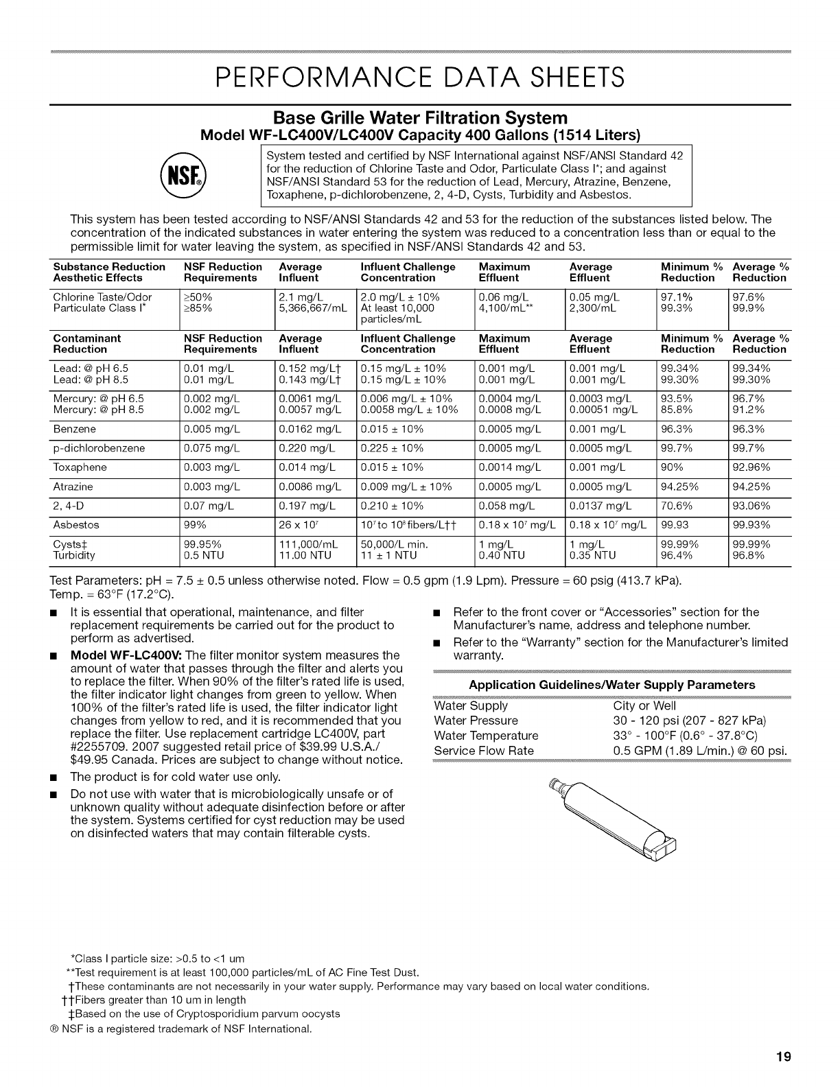 WATER FILTER CERTIFICATIONS ............................................. 18