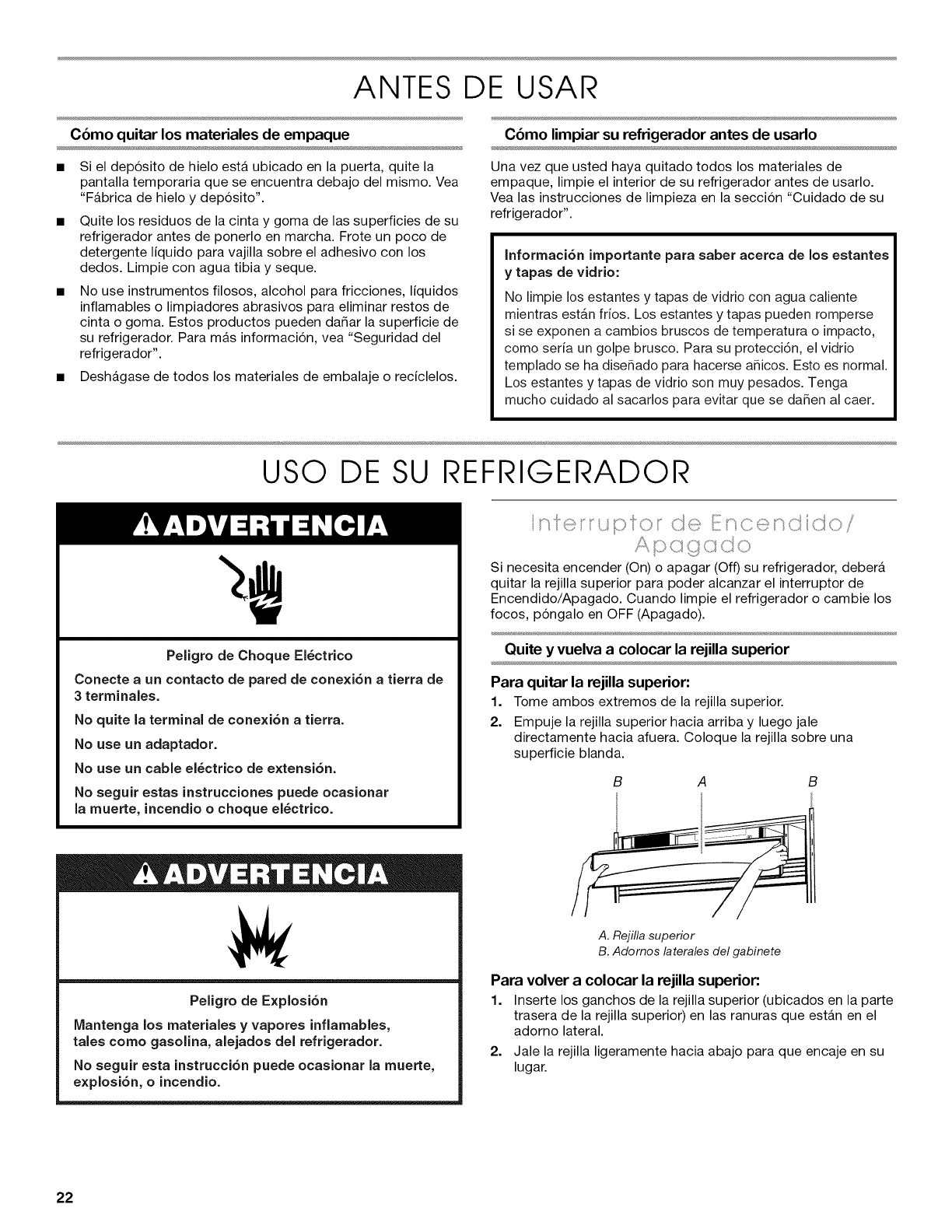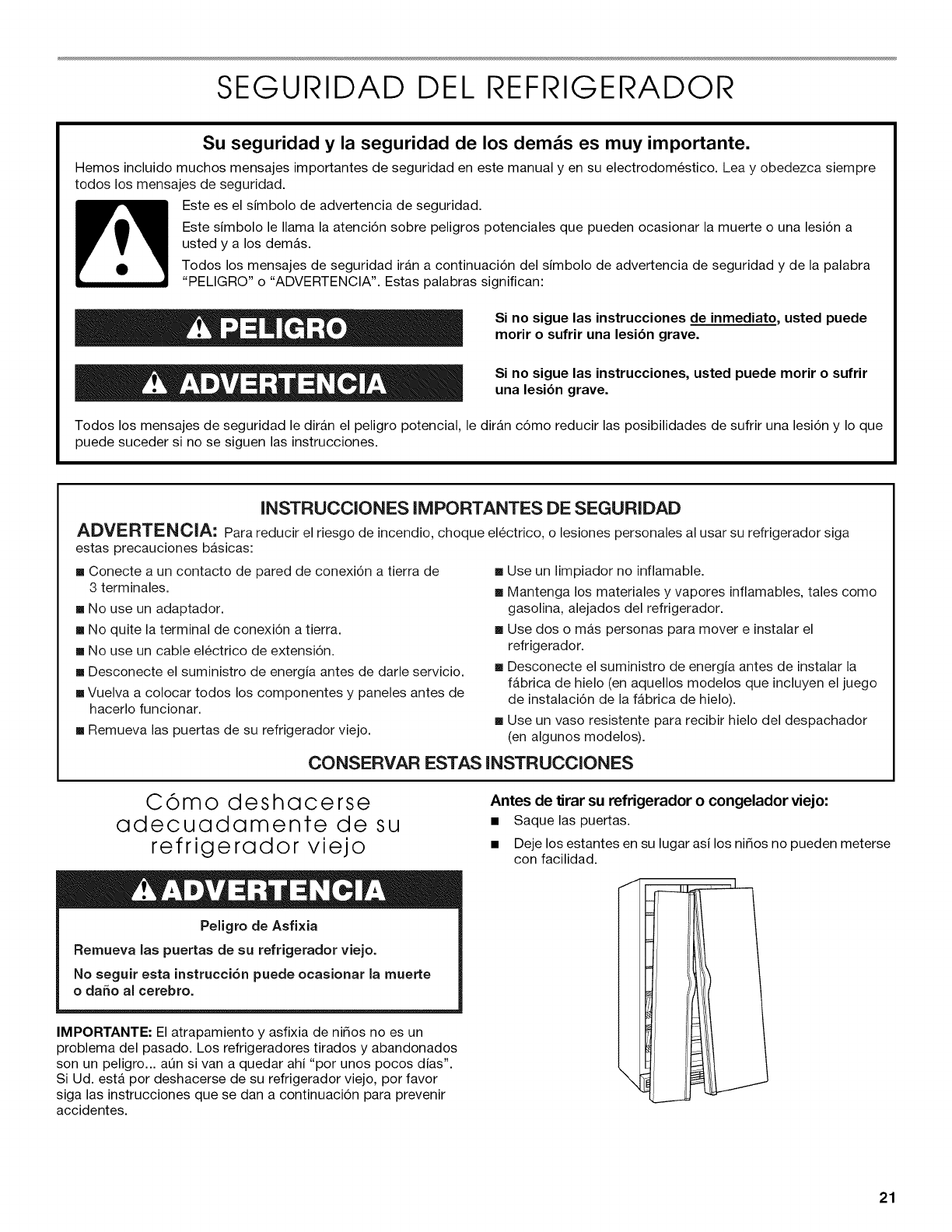SEGURIDAD DEL REFRIGERADOR ........................................... 21