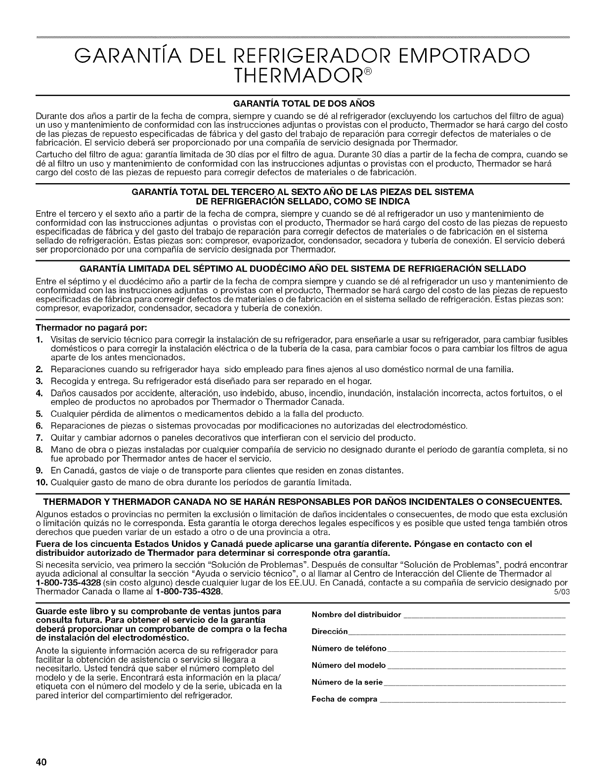 Todos los derechos reservados. Thermado¢ _ se reserva el derecho de hacer cambios en los modelos, caracterfsticas y especificaciones sin previo aviso. Impreso en EE, UU.