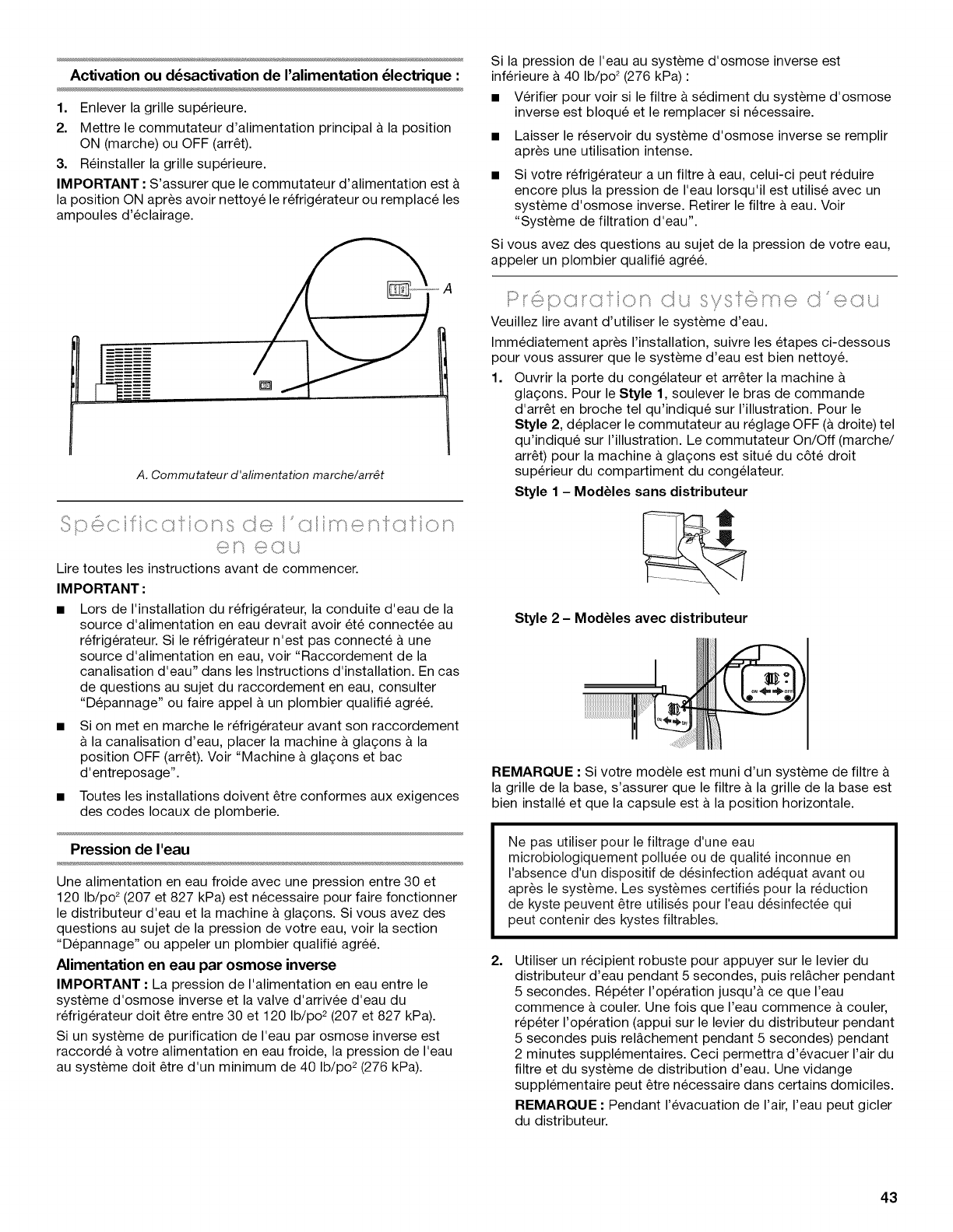 Pression de I'eau 30 - 120 Ib/po 2(207 - 827 kPa)