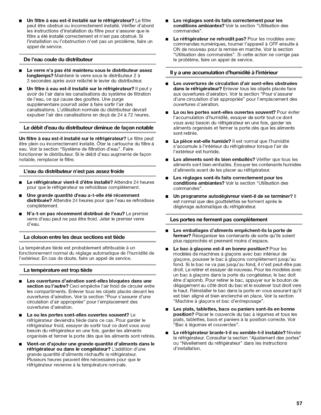 Pour une periode de deux ans& partir de la date d'achat, Iorsque ce refrigerateur (& I'exclusion des cartouches du filtre d'eau) est utilise