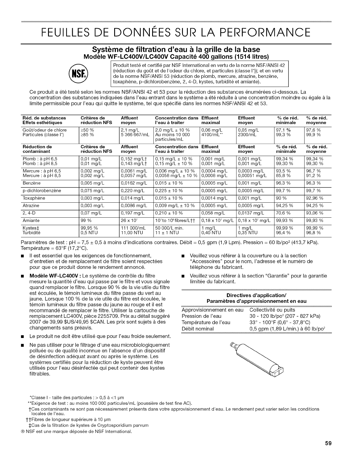 1-Ces contaminants ne sont pas necessairement presents clans votre approvisionnement d'eau. Le rendement peut varier selon les conditions