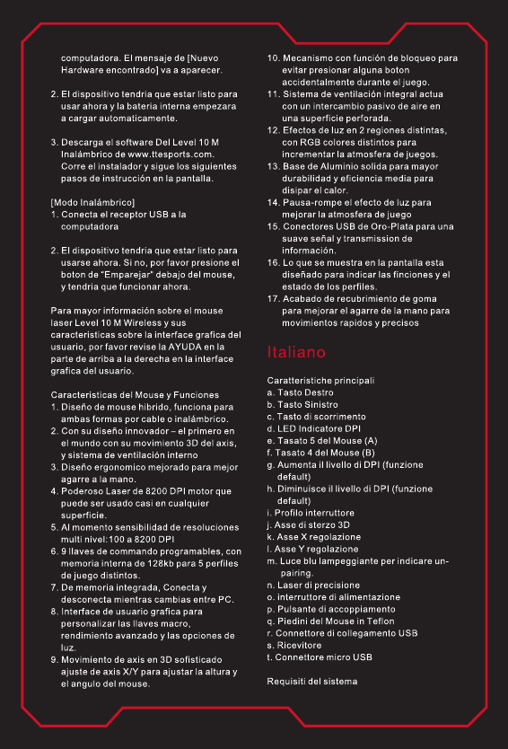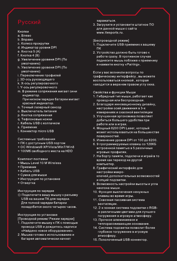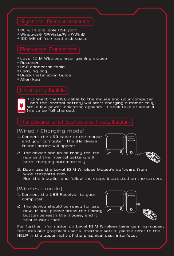 Thermaltake Technology MOLTMHYLOBK01 Level 10M Wireless Mouse User Manual LEVEL 10 M Mouse Wireless out