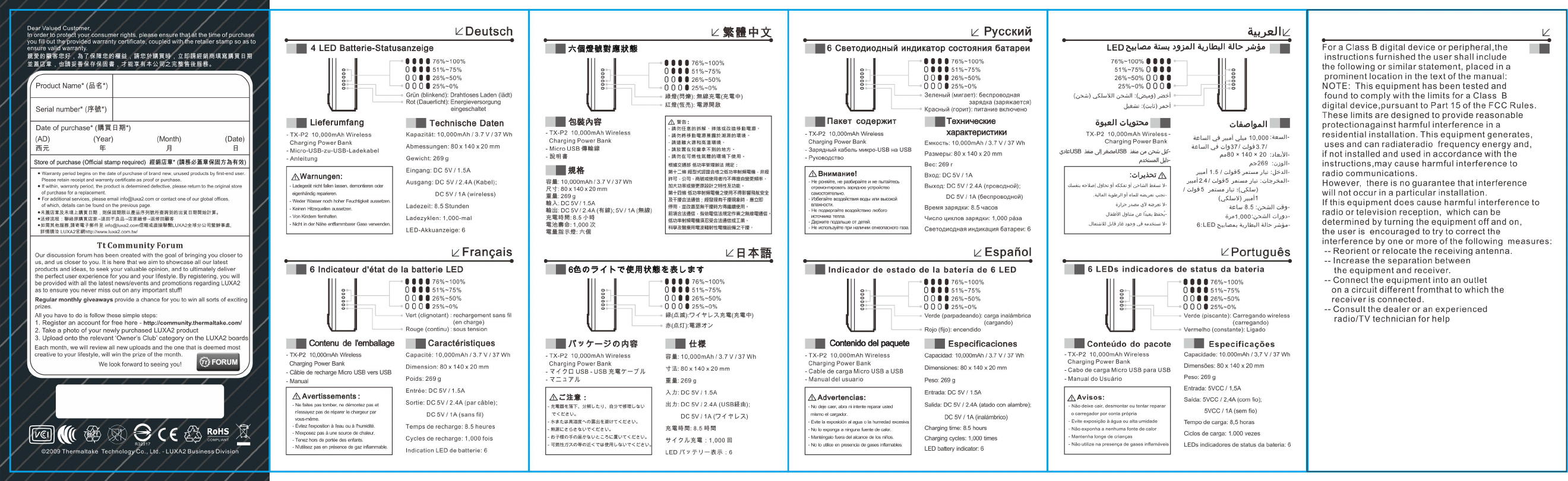 Thermaltake Technology POWPCPCP2BK TX-P2 10000mAh Wireless Charging Power Bank User Manual
