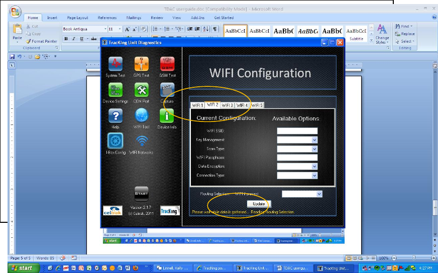 l. Click on Routing Selection and select “ Wi-Fi if present” and click update button. See