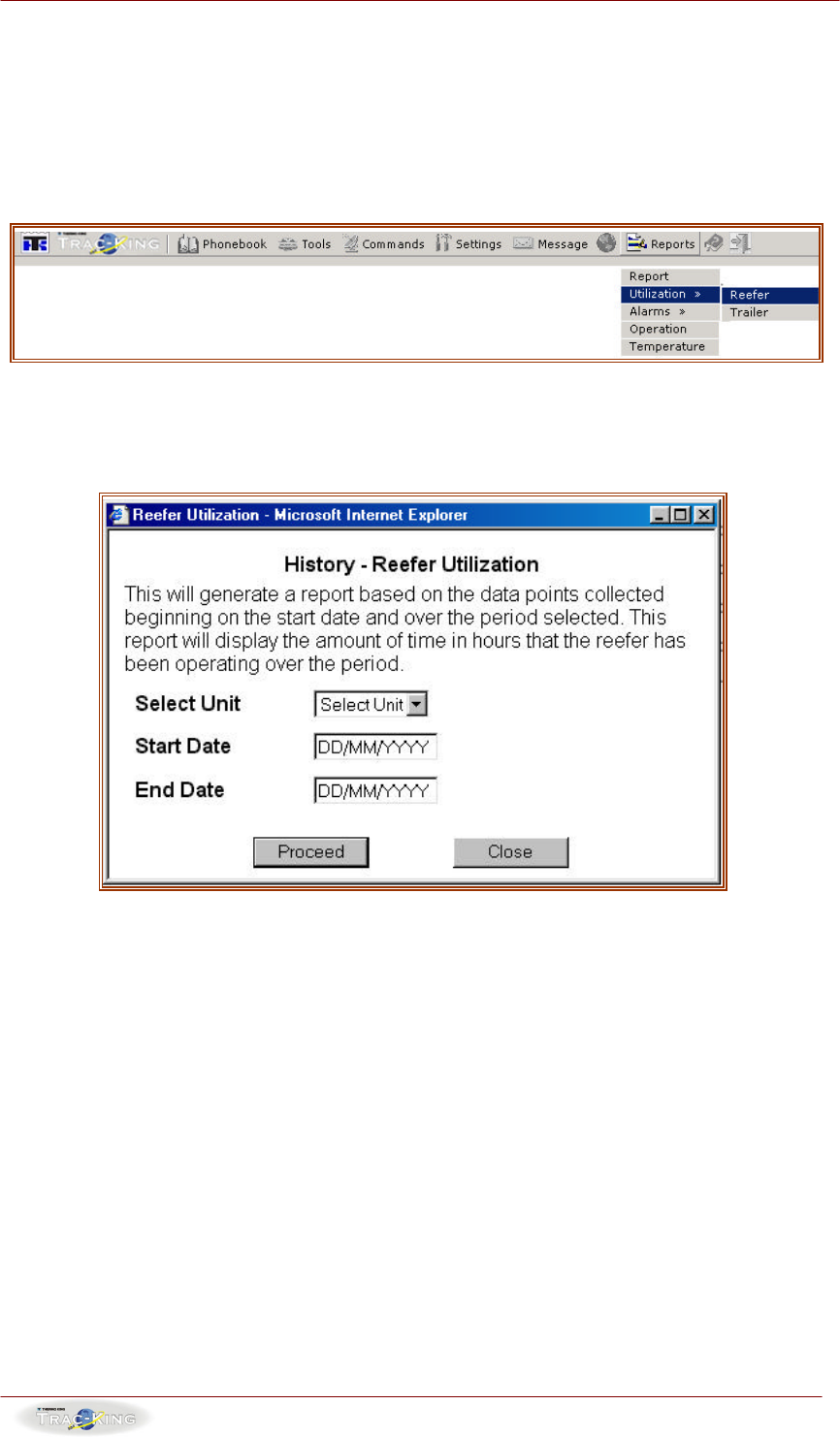 operating over a specified period of time. The reefer utilization history can be