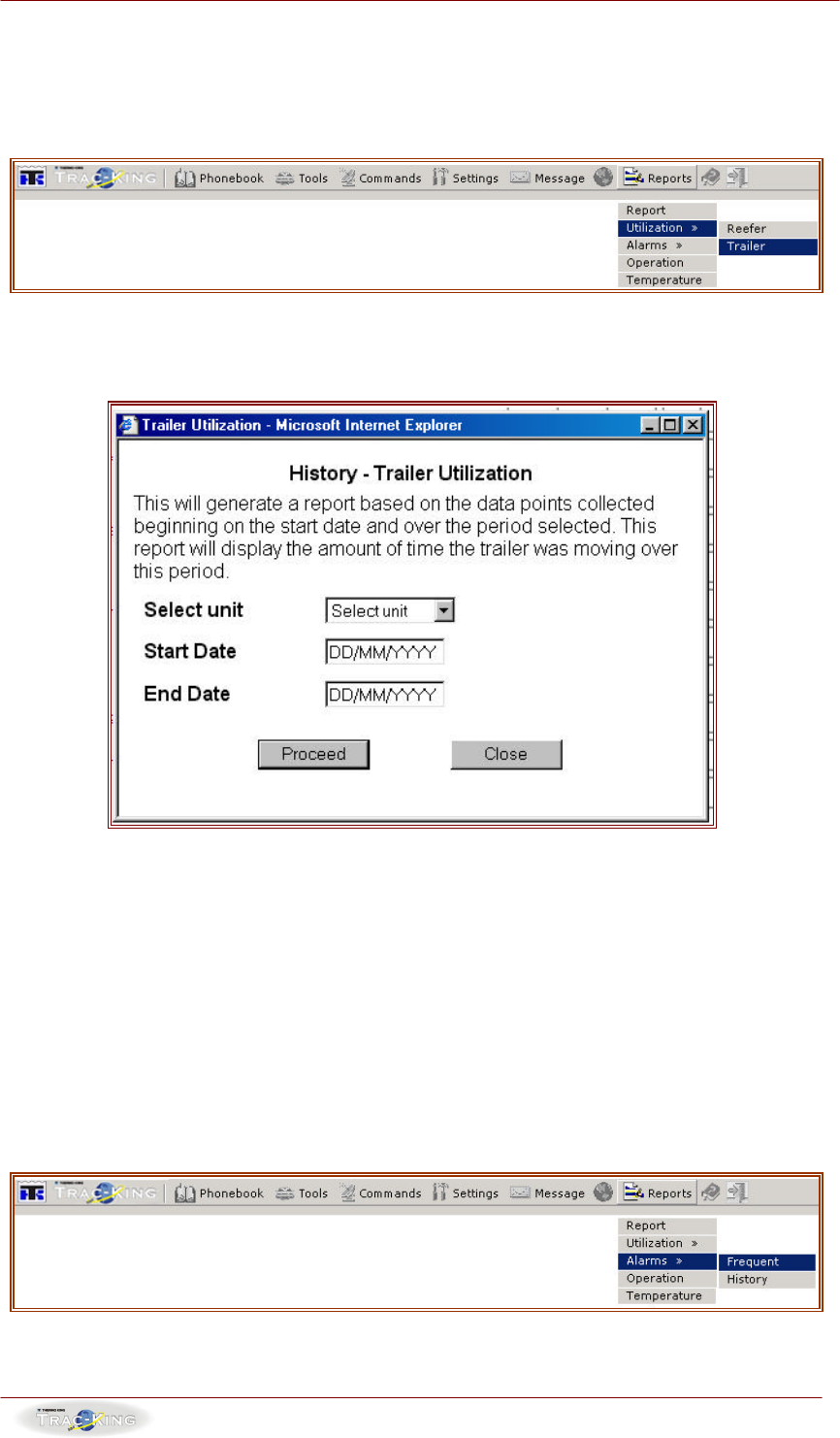 1. To generate a trailer utilization report, select a unit from the “Select Unit”