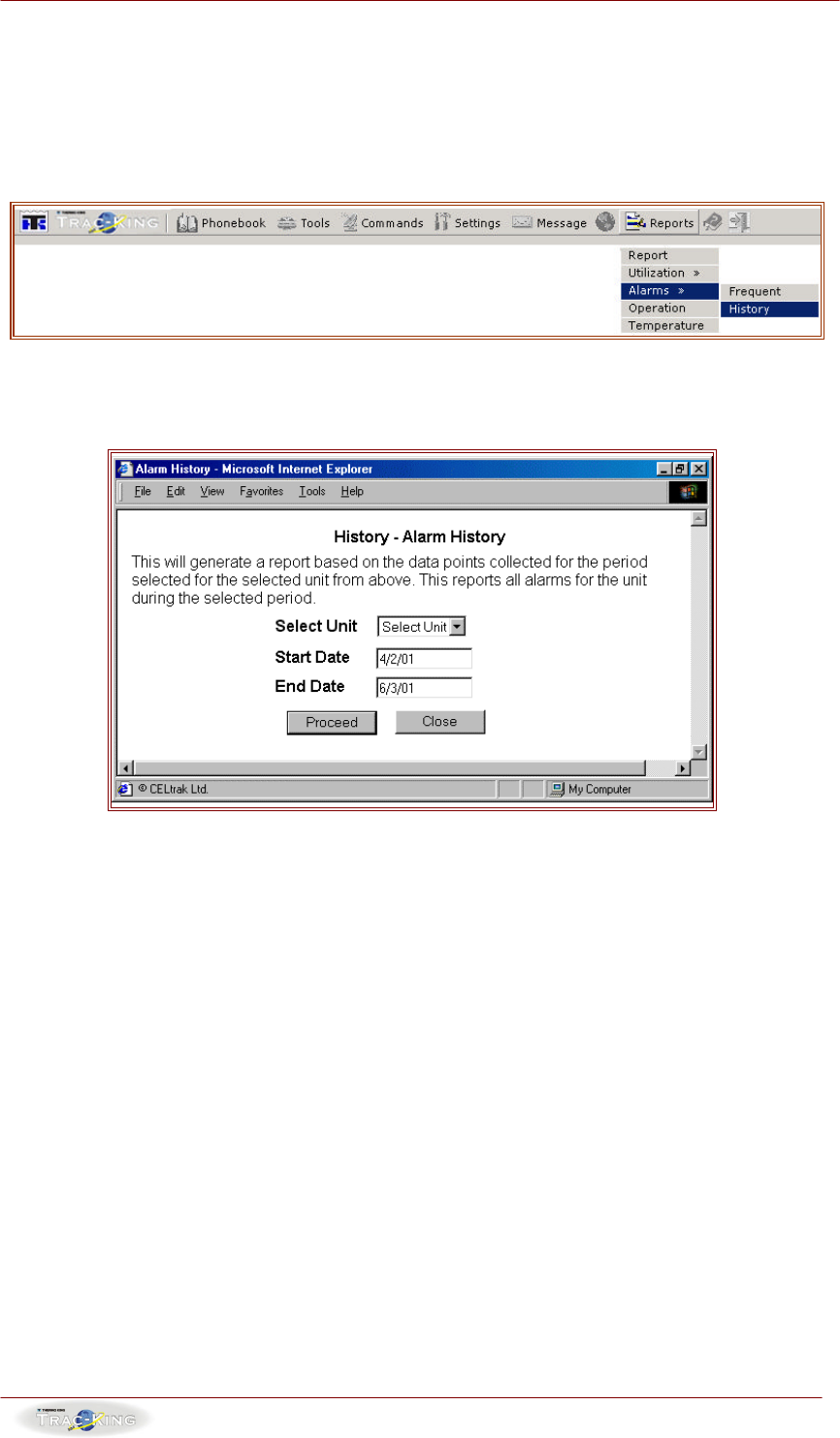 3. Click on the “Proceed” button to generate the alarm history report.