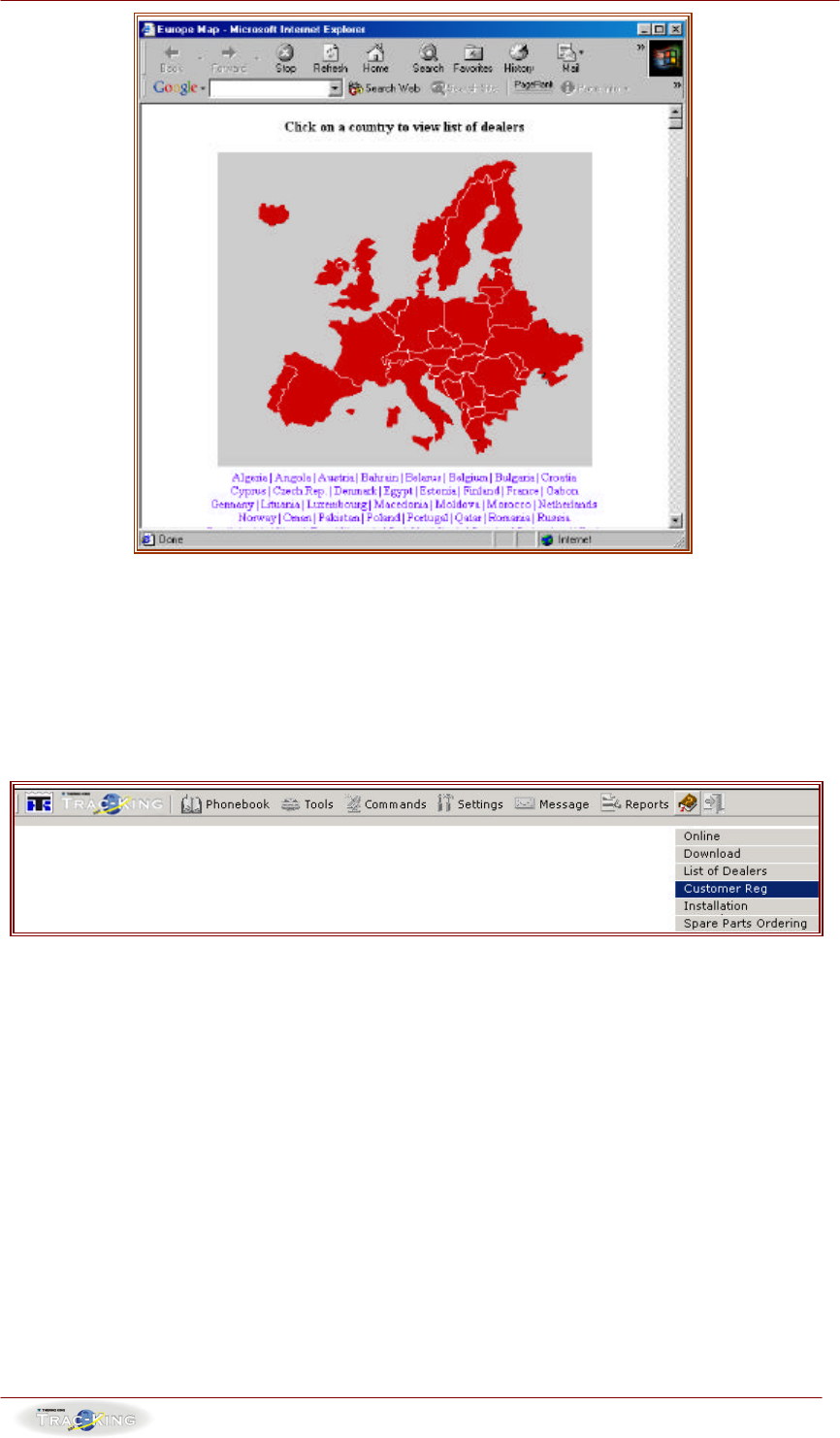 menu also contains a list of Thermo King dealers across Europe and their phone