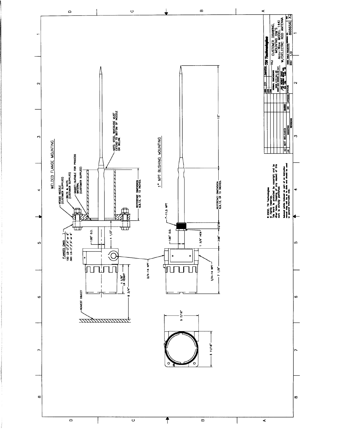 The dielectric rod antennas are fitted with either a 1-inch NPT threaded bushing, welded