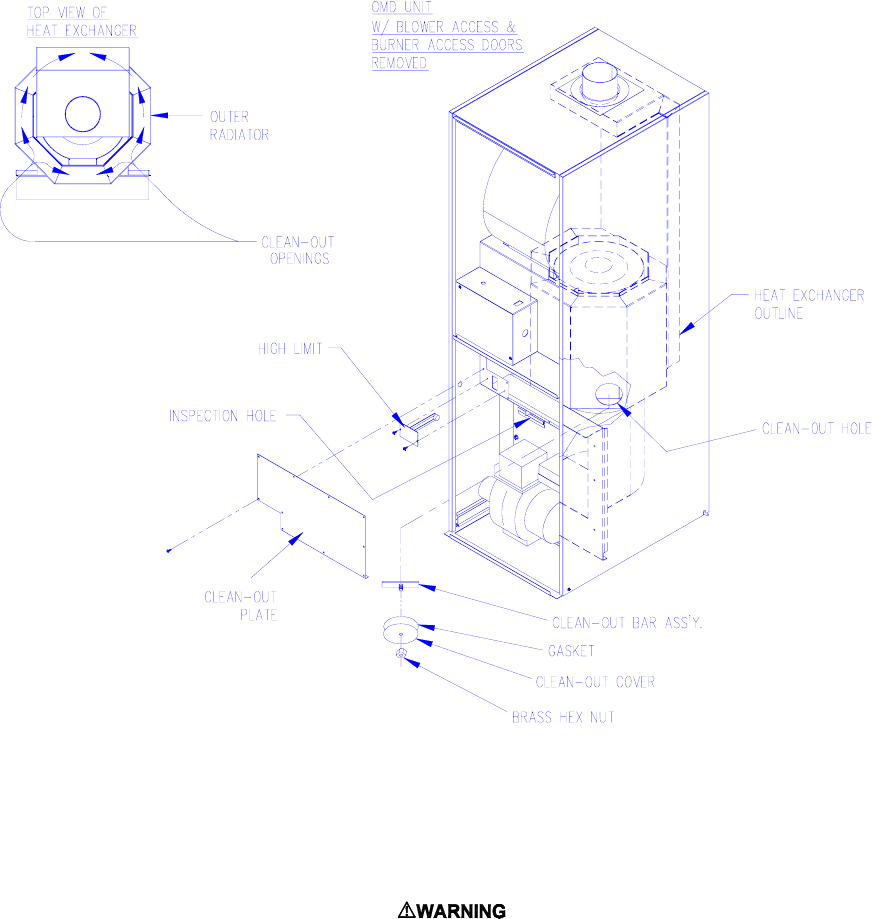 To vacuum and brush the outer radiator of the heat exchanger, go through the cleanout