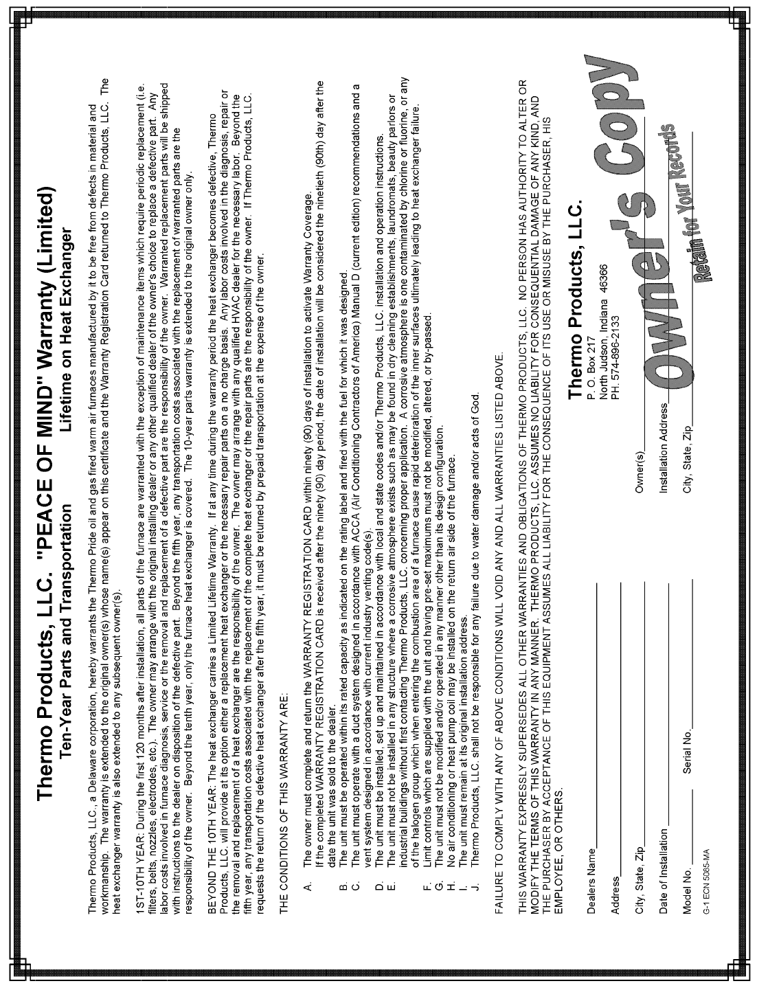 Thermo Products Pride Furnace Omd 70 Users Manual KDKD