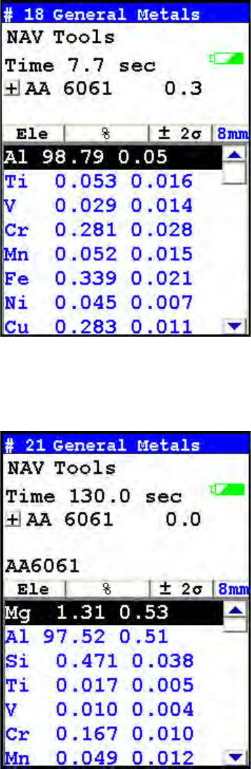 Figure 75. All Alloy Analysis of Al 6061, Showing Fast ID of Al Alloys (Light Range