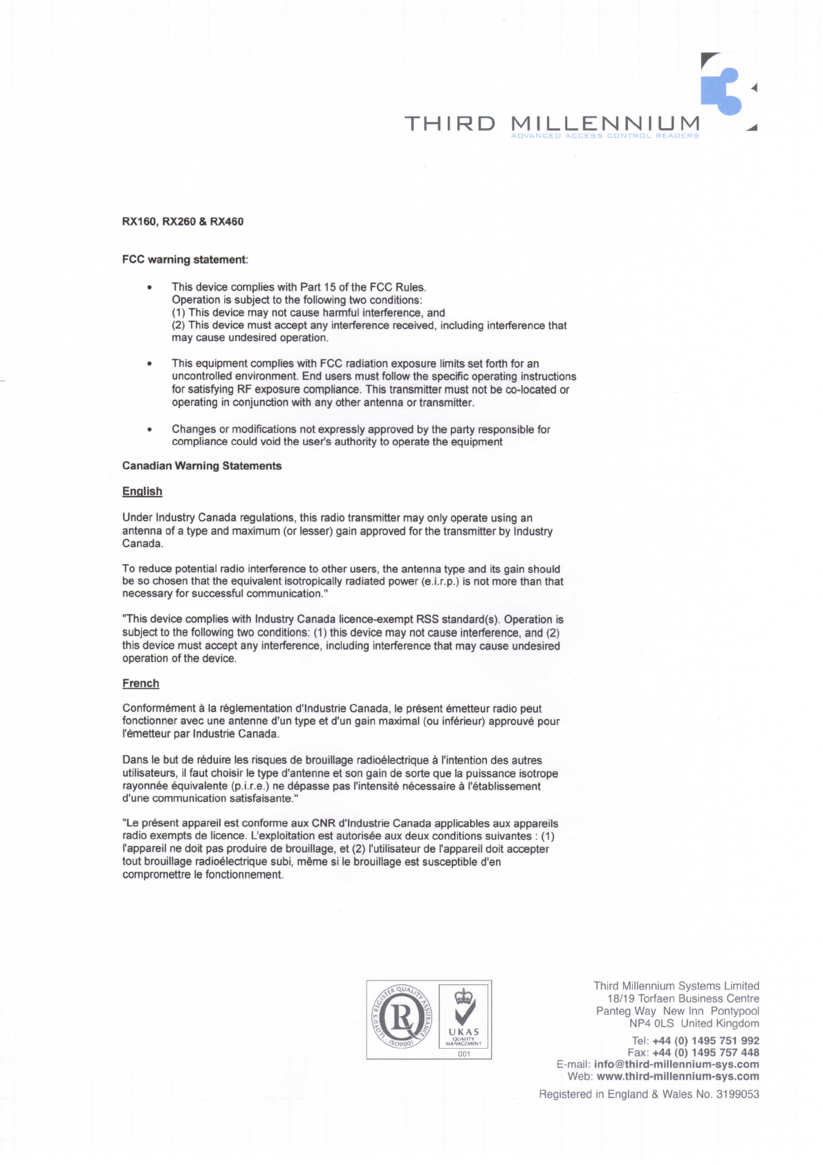 Third Millennium Systems Ltd. RX160 RFID Contactless Proximity Reader Packaging FCC warning