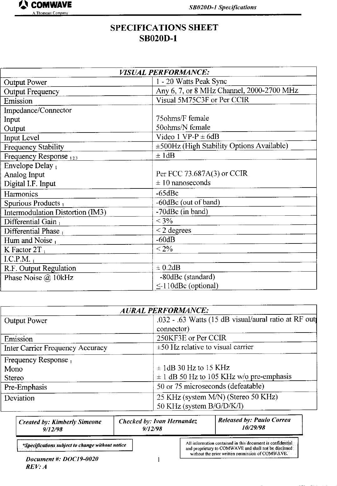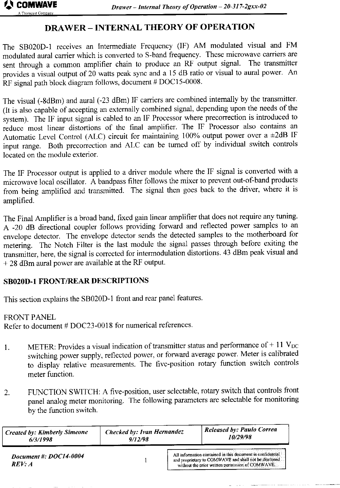 Thomson Broadcast and Multimedia 8BUSB020D-1 User Manual 8