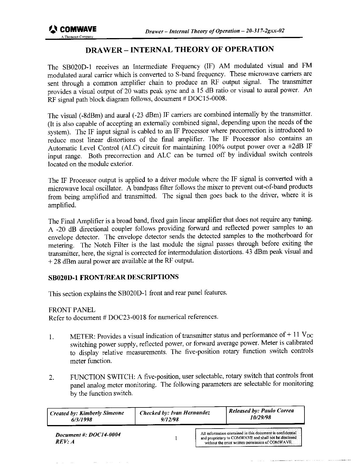 Thomson Broadcast and Multimedia 8BUSB020D-1 User Manual 8