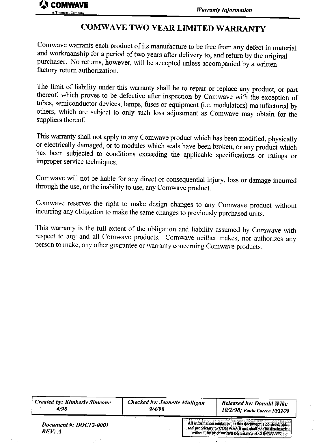 Thomson Broadcast & Multimedia, Inc. VHF / UHF Input 32002