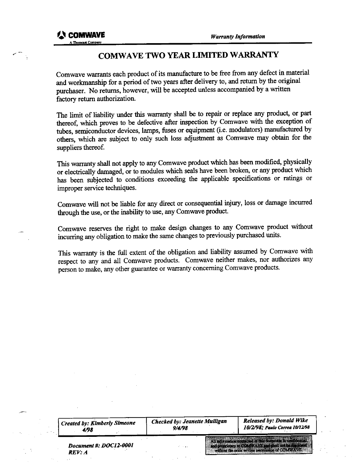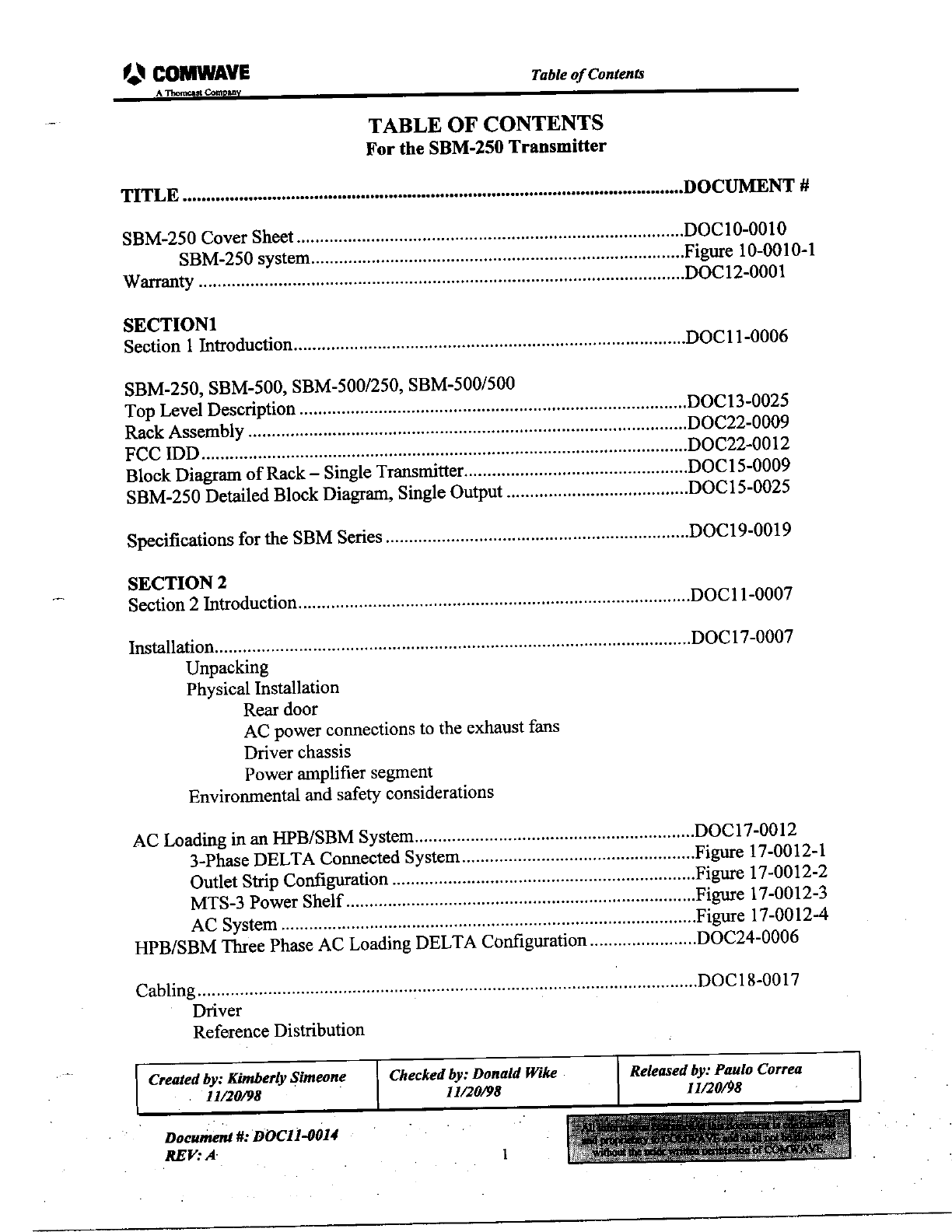 Thomson Broadcast and Multimedia 8BUSBM-250A User Manual 33722