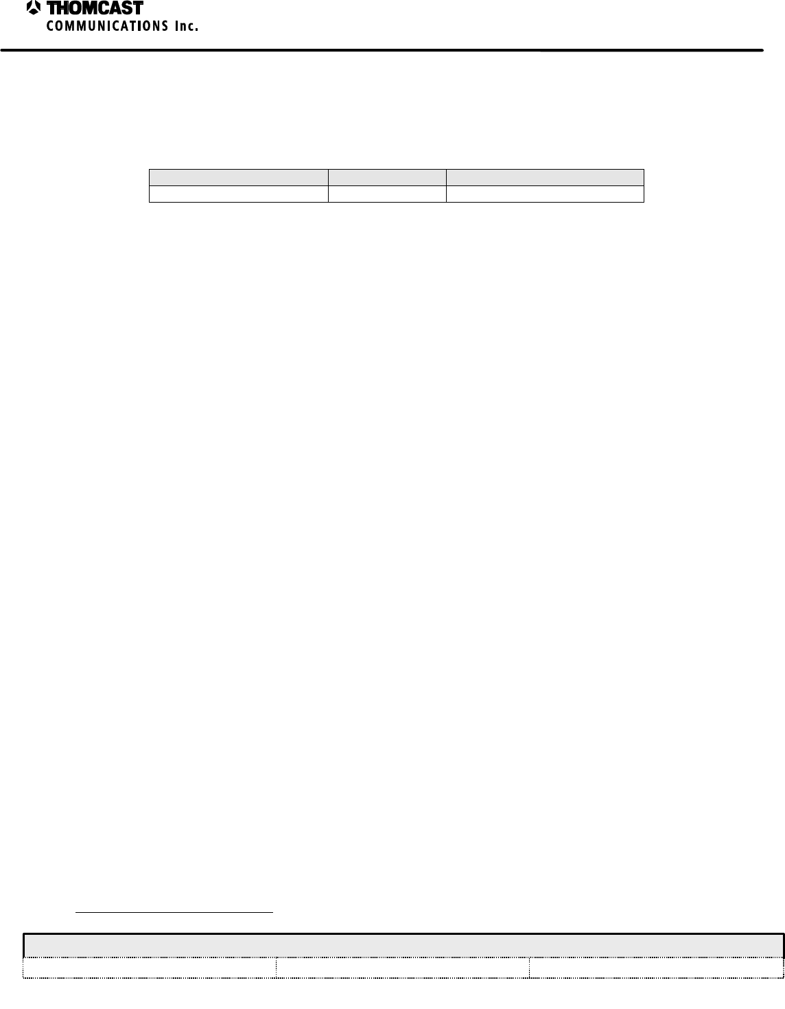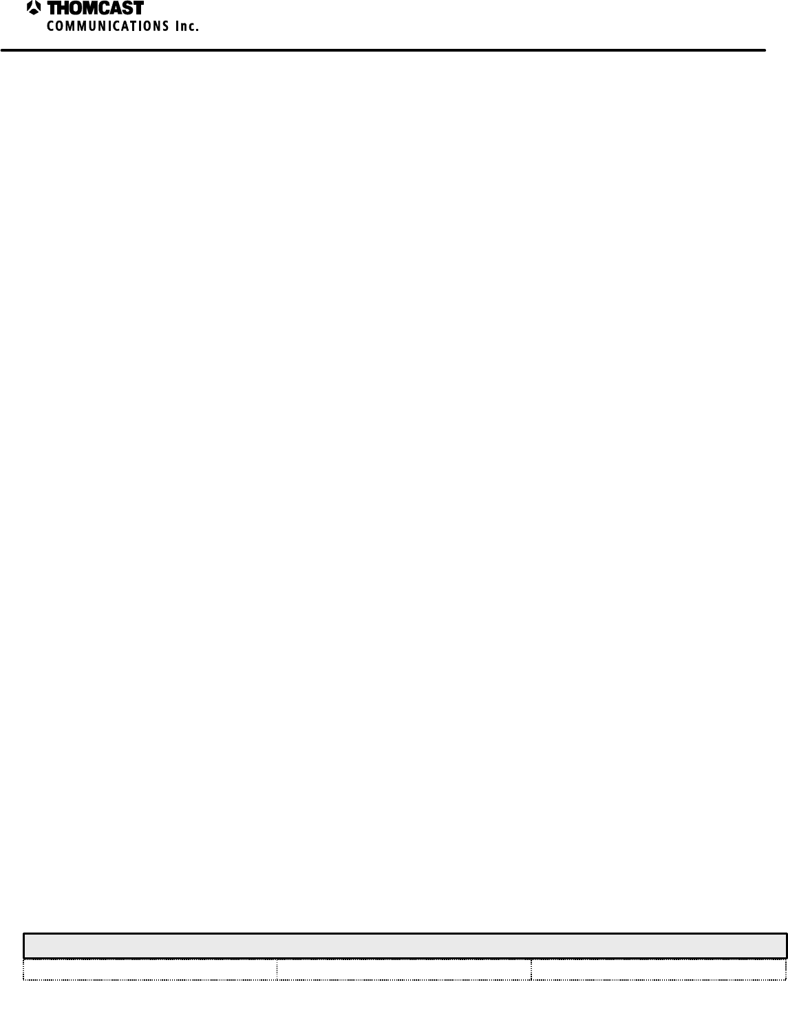 All information contained in this document is confidential and proprietary to THOMCAST and shall not be disclosed without the prior written permission of THOMCAST.
