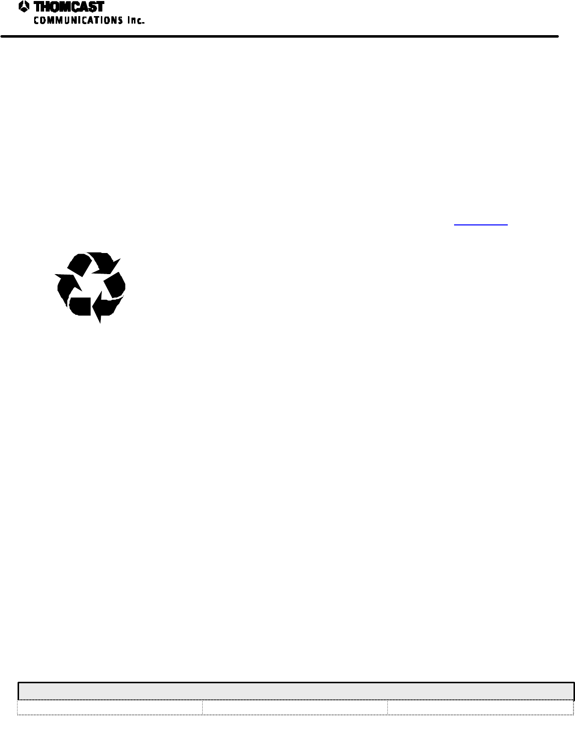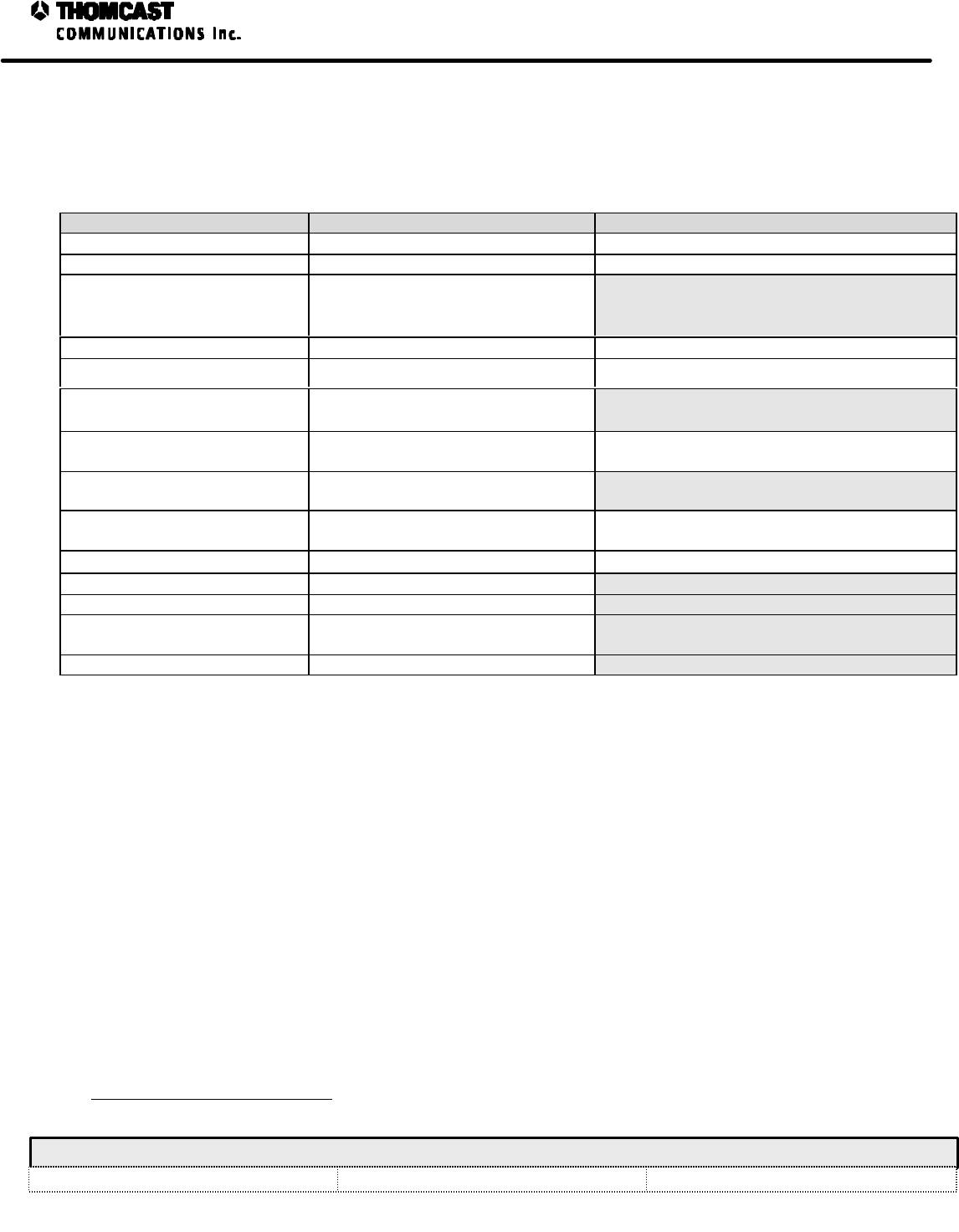 All information contained in this document is confidential and proprietary to THOMCAST and shall not be disclosed without the prior written permission of THOMCAST.
