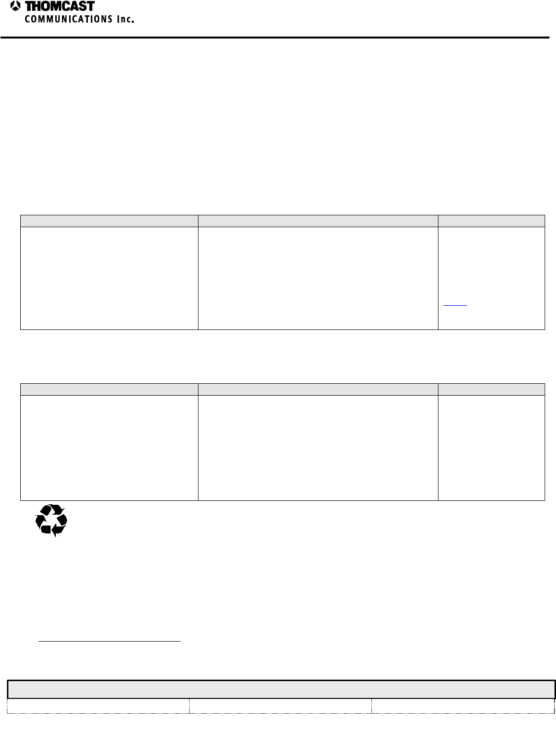 All information contained in this document is confidential and proprietary to THOMCAST and shall not be disclosed without the prior written permission of THOMCAST.