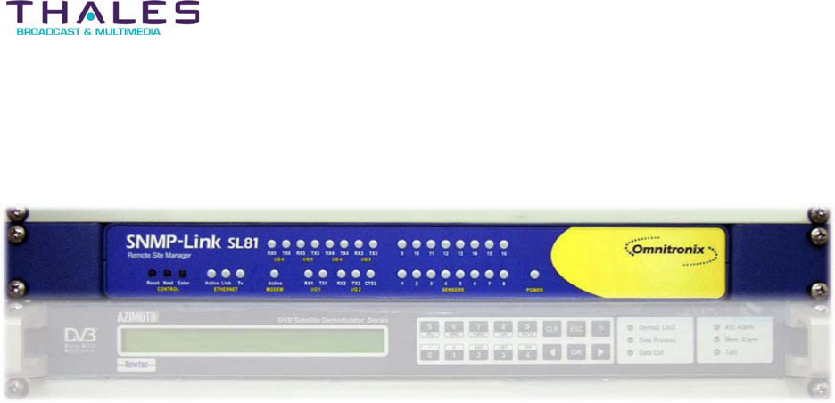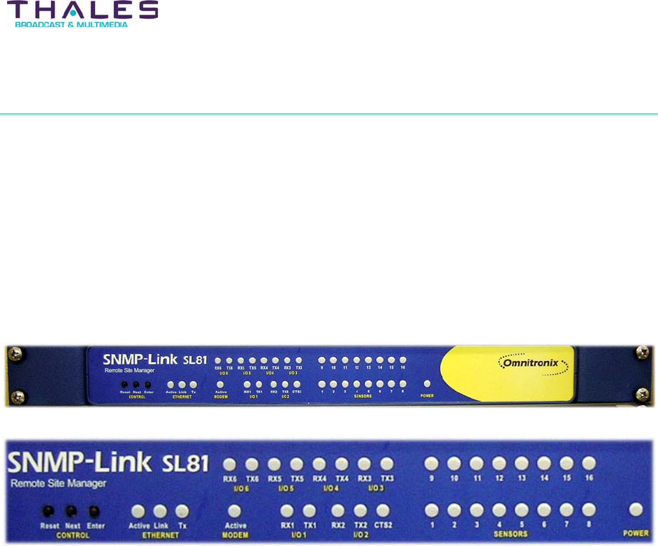 The Omnitronix SL81 Status Monitoring and Control System (SMCS) is provided for use with