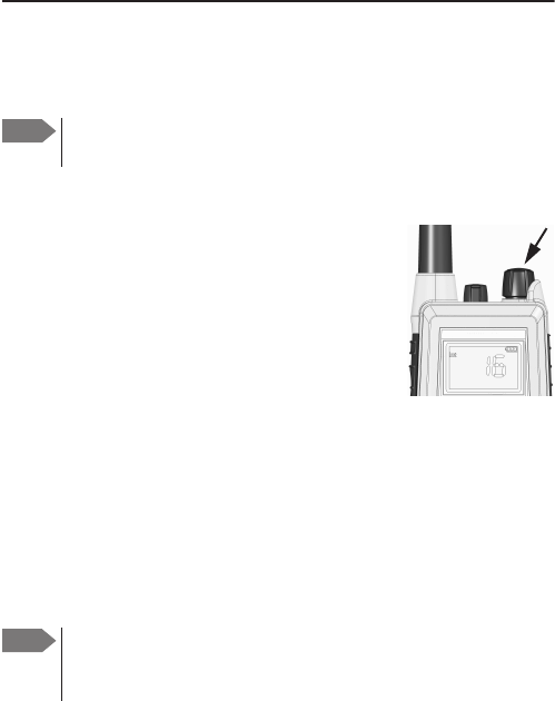 •   Turn the knob at the top of the radio clockwise. The display lights up