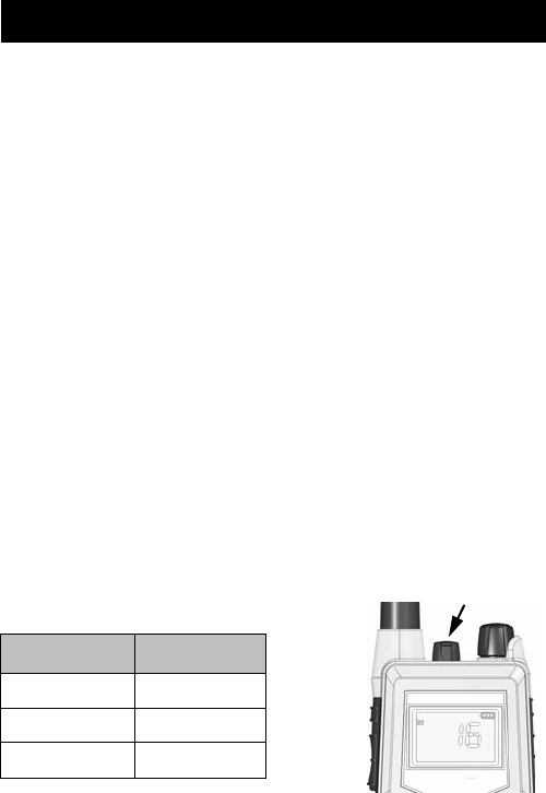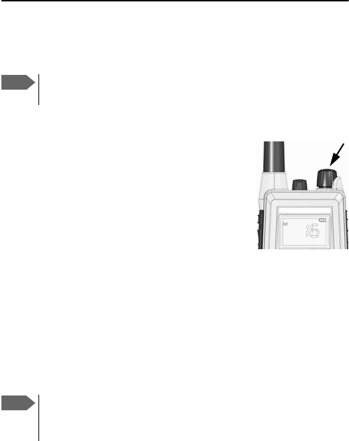 •   Turn the knob at the top of the radio clockwise. The display lights up