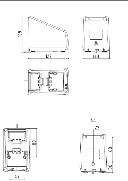 Desktop mounting, top view                                           Wall mounting, rear view
