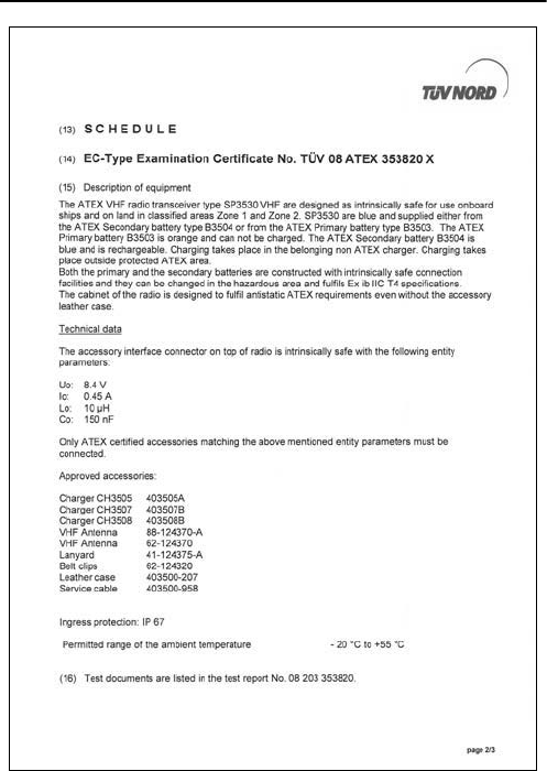 SAILOR SP3530 ATEX VHF is designed for "occupational use only". It must be