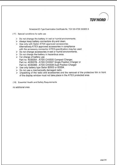 • Use only with Sailor ATEX approved accessories.