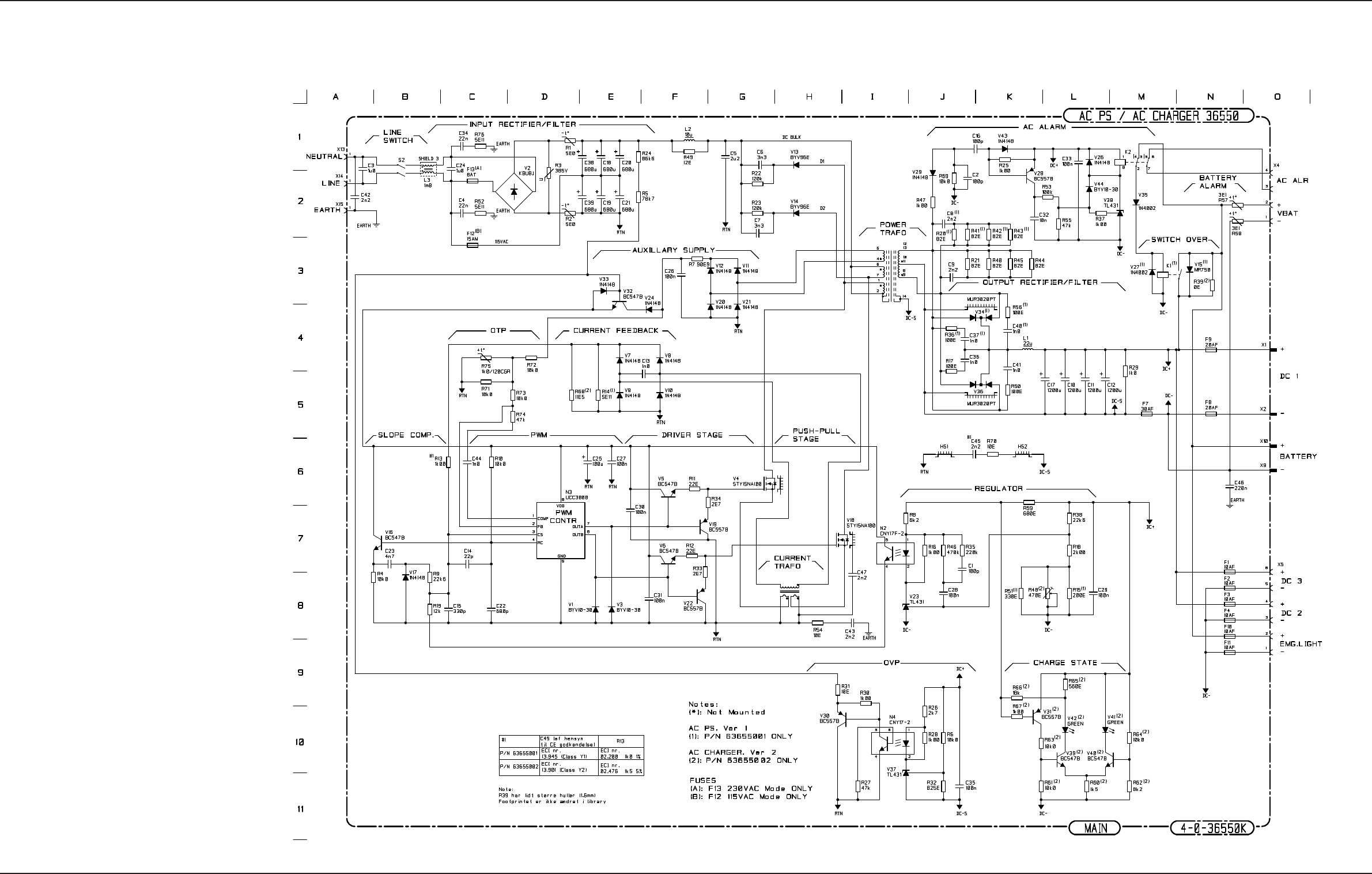 circuit producing an unregulated DC voltage which is converted to 29V in a push-pull converter. A