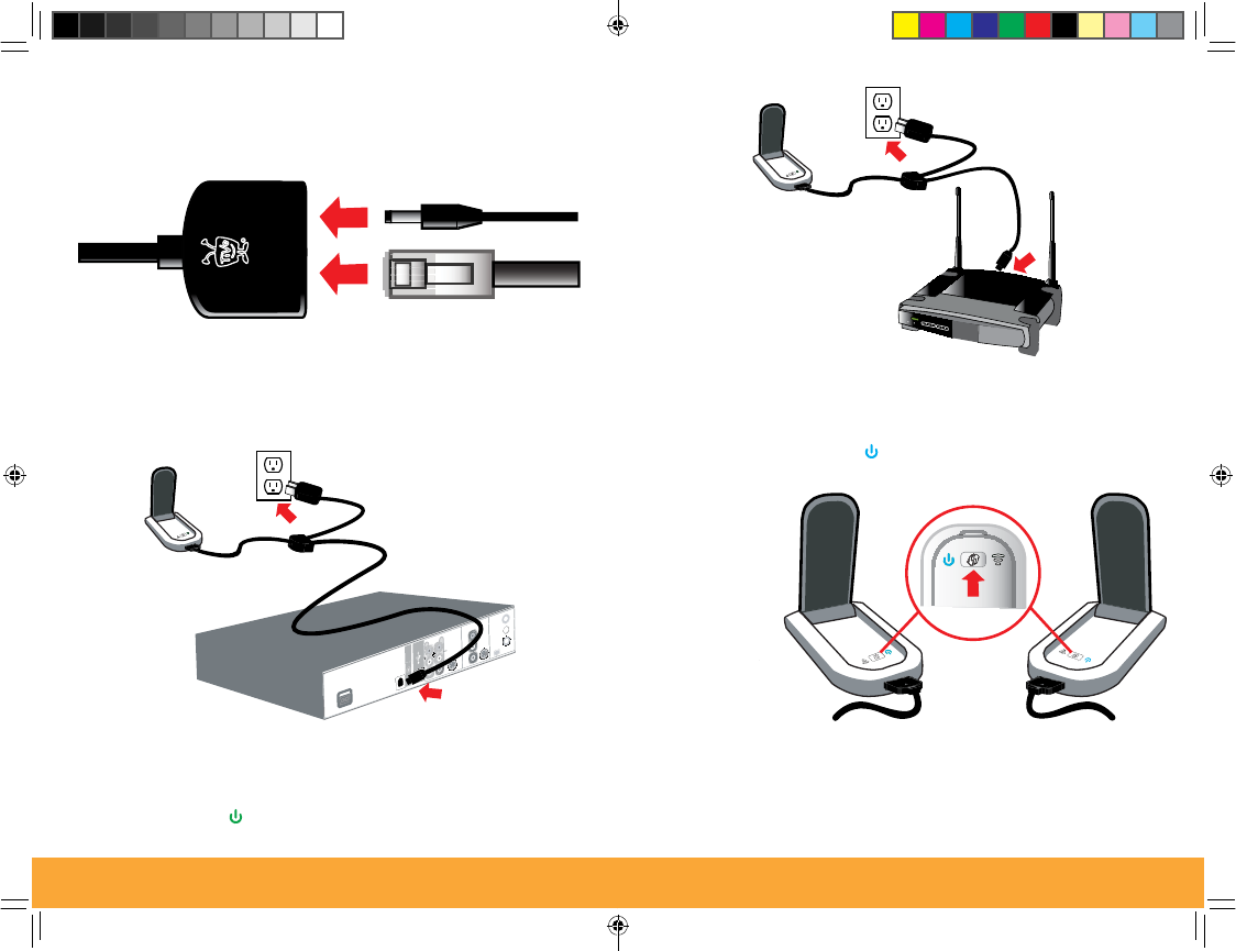 ᕦ Plug the power cord from the fi rst adapter (set to